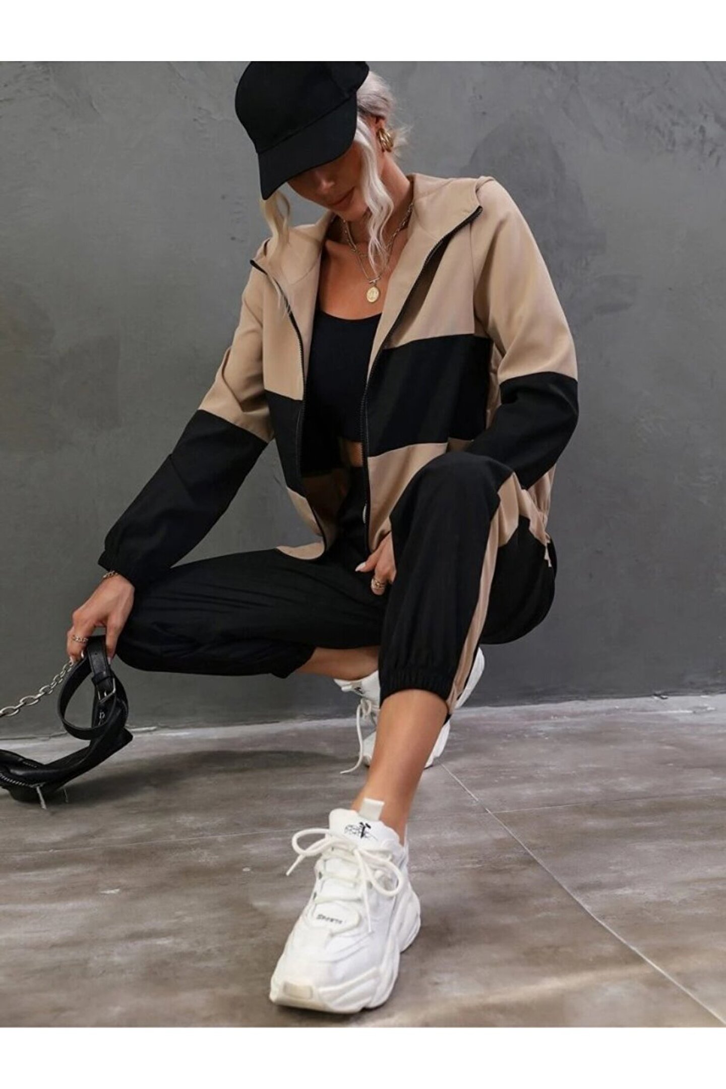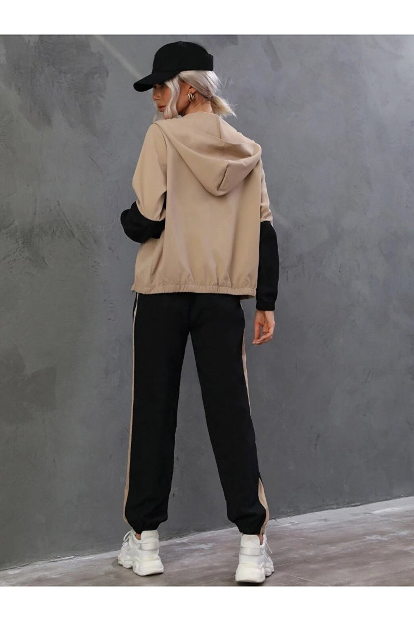 BEFAON EQURİ Kadın Uzun Kollu Kapşonlu önden Fermuarlı Viskon Iki Iplik Bluz Ve Pantolon Ikili Takım