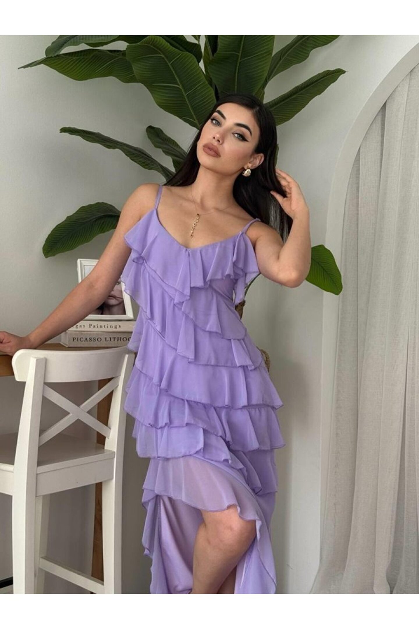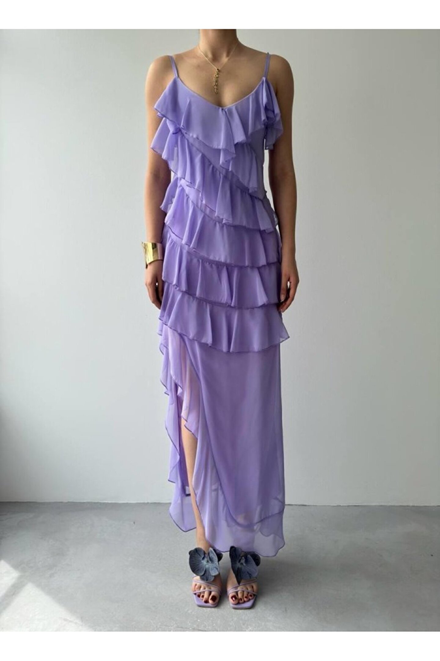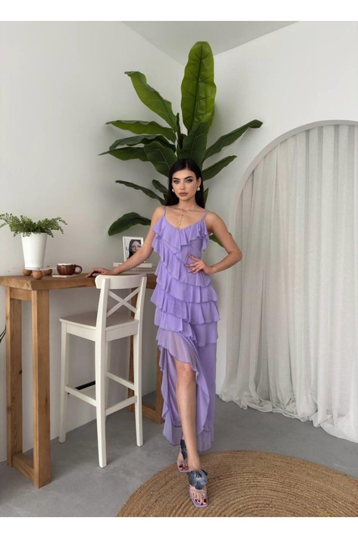 BEFAON Gökyüzü Moda Ples Yırtmaç Detaylı Elbise