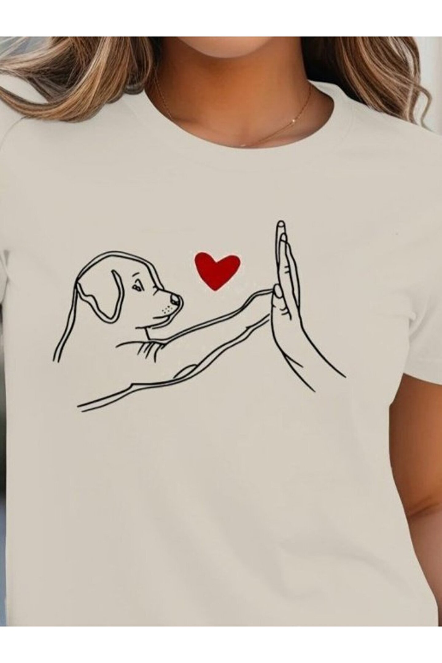BEFAON Kadın Kısa Kollu Bisiklet Yaka Köpek Baskılı Viskon Bluz
