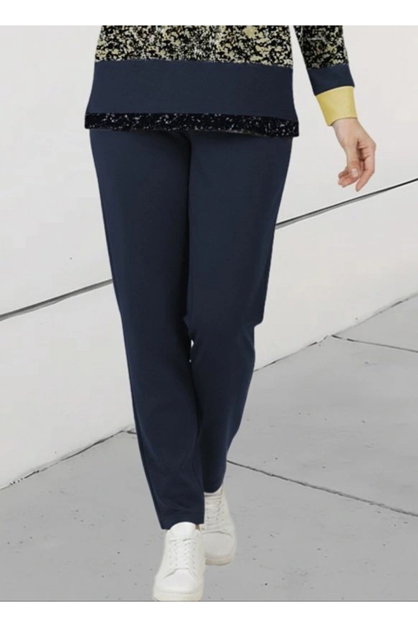 Kadın Uzun Kollu Bisiklet Yaka çizgili Desen Iki Iplik Bluz Ve Pantolon Ikili Takım