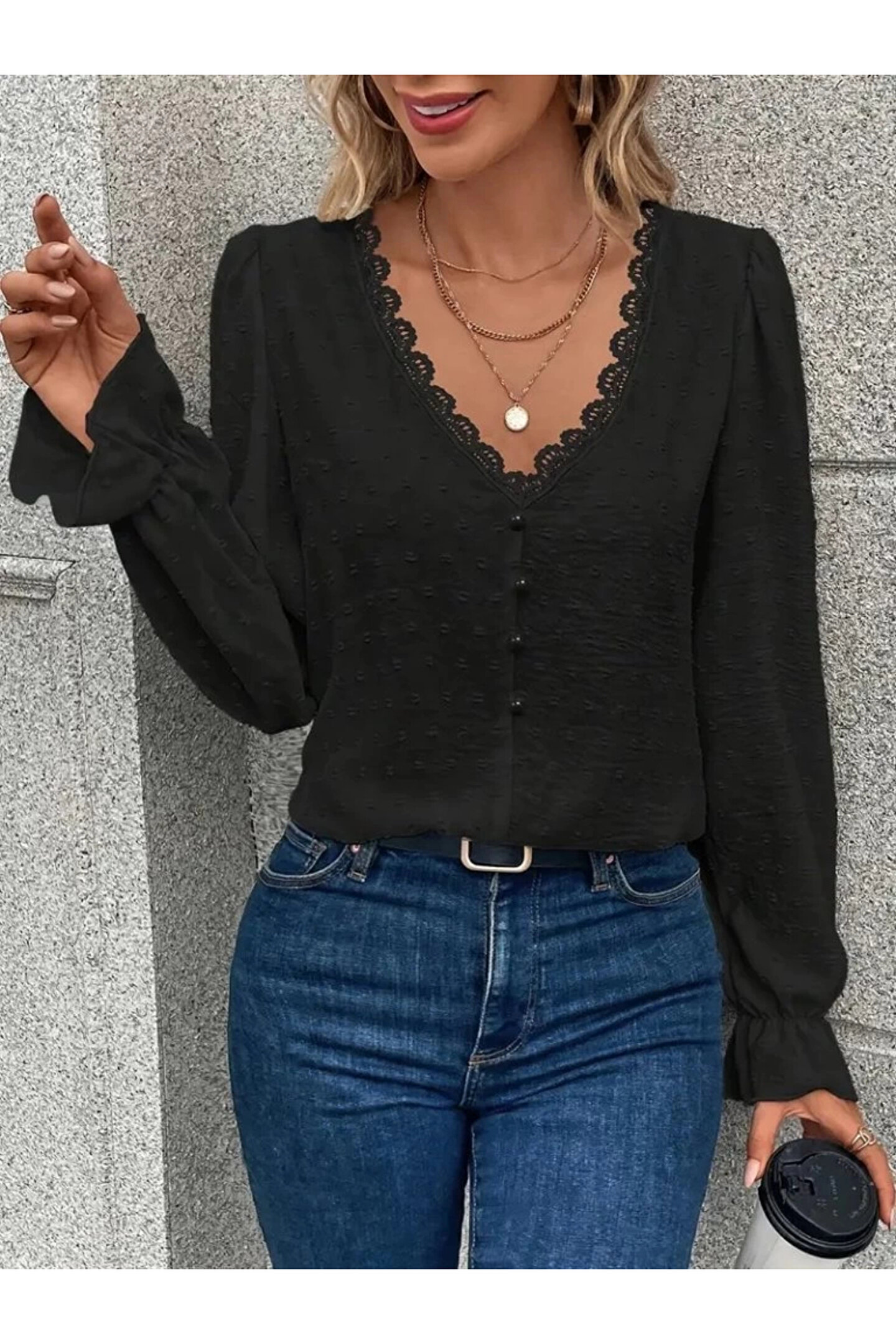 Kadın Uzun Kollu V Yakalı önden Düğmeli Bluz