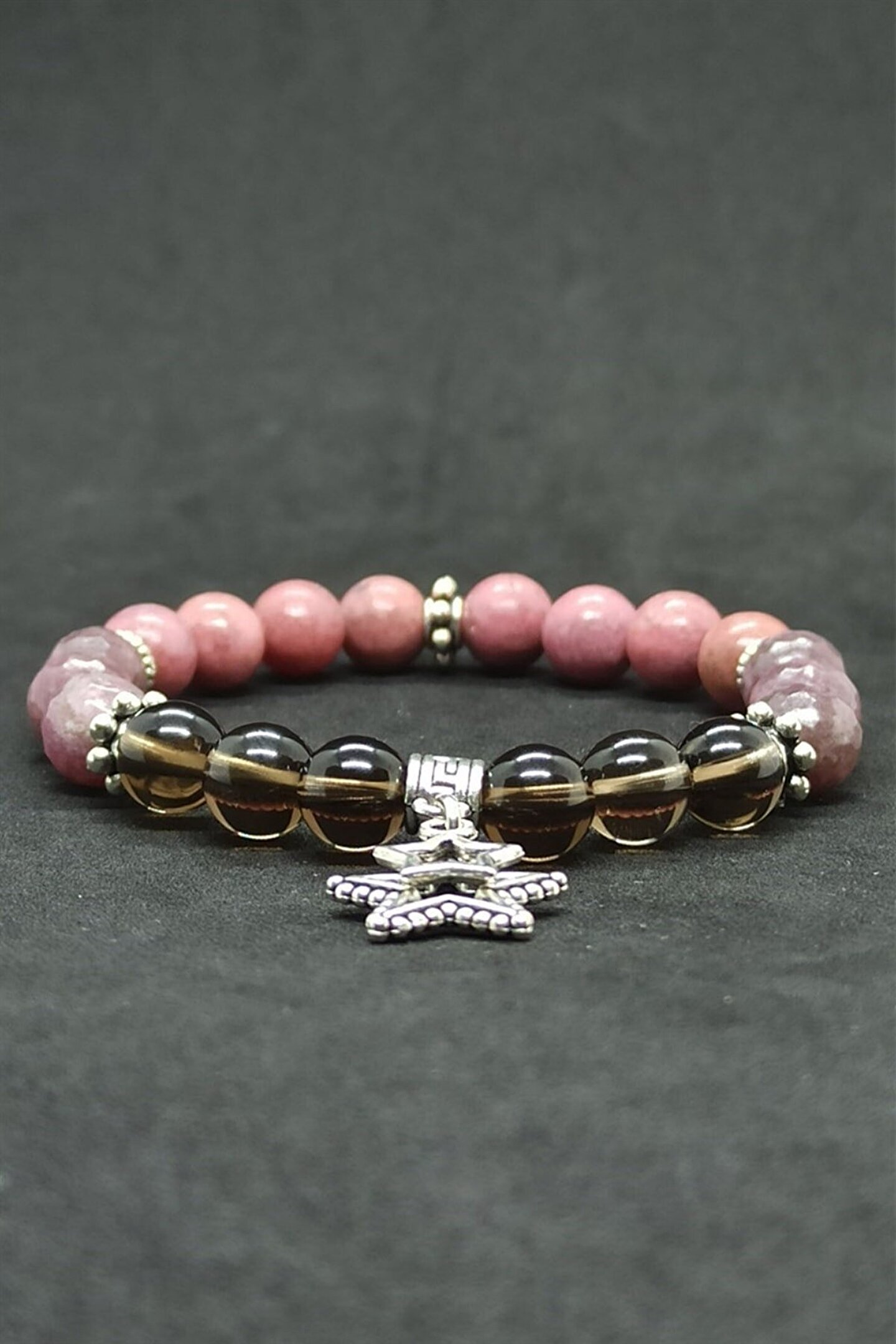 Dumanlı Kuvars Lepidolit Rodonit Doğal Taş Kadın Bileklik Dumanlı Kuvras: İyileştirici taşlar arasında yer alır. ; Sinir sistemini güçlendirir. ; Kişiye sakinlik verir. ; Kolay iletişim kurmanıza yardımcı olur. ; Odaklanmaya yardımcı olur. ; Tiroid bezini korur ve iyileştirici özelliği vardır. ; Radyasyona karşı koruyucudur. ; Sinirsel gerginliğe ve panik atak hastalığına iyi gelir. ; Lepidolit taşı: kişiye rahatlama ve huzur veren çok güçlü bir taştır. ; Bedeni dinlendirir. ; Güven ve kabullenme duygusunu geliştirir. ; Elle tutulduğunda kişiyi sakinleştirir. ; Endişe ve kuruntuyu giderir, mutluluk verir. ; Umutsuzluk ve bunalımları hafifletir. ; İyimserlik ve sabır verir. ; Bağımlılıkladan kurtulmaya yardımcıdır. ; Akıl,Zihin,Aşk,Güç sembolüdür ve kullananın bu özellikleri edinmesine yardım eder. ; Rodonit Taşı: ruhsal enerjiye sahiptir. ; Uyum ve huzur verir. ; Sorunlarla başa çıkmanıza yardımcı olur. ; Günlük yaşamda başarılı olmaya yardımcı olur. ; Ruhsal,zihinsel ve fiziksel canlılığınızı arttırır. ; Sınav öncesi stresi ortadan kaldırır.Zihin açıklığı verir. ; Öğrenme yeteneğini arttırır. ; Korkuyu azaltmaya yardımcı olur. ; Neşe,keyif,memnuniyet,aşk ve sevgi sembolüdür,kullananın bu özellikleri kazanmasına yardım eder. ; Boğaz ve gırtlak iltihaplarının tedavisine yardım eder. ; Anksiyete ve depresyon tedavisinde destek amaçlı kullanılmaktadır.;