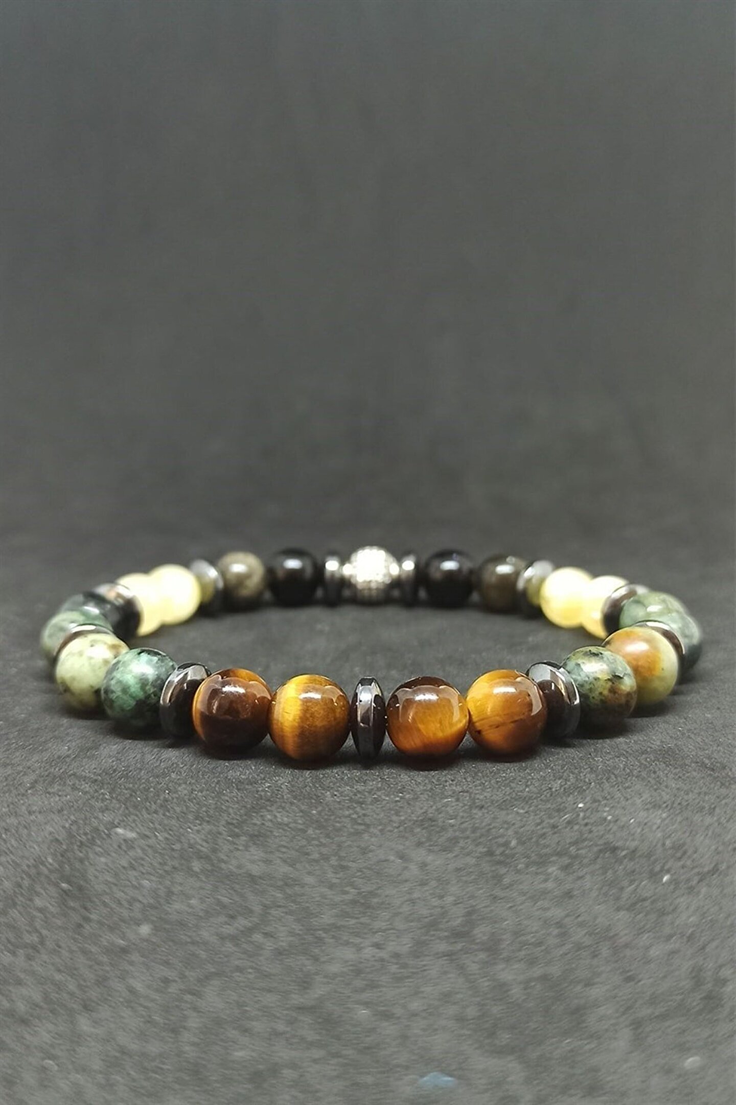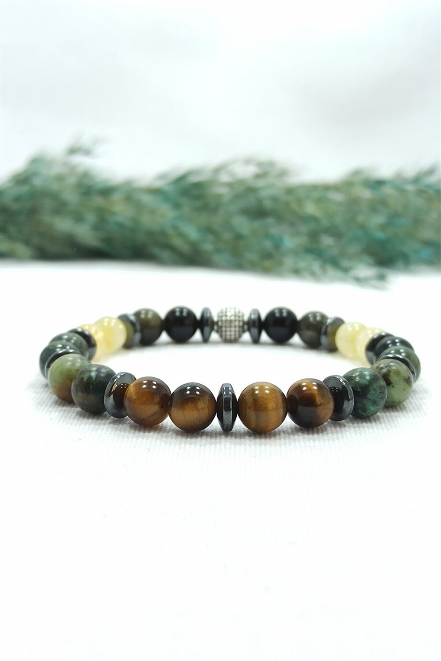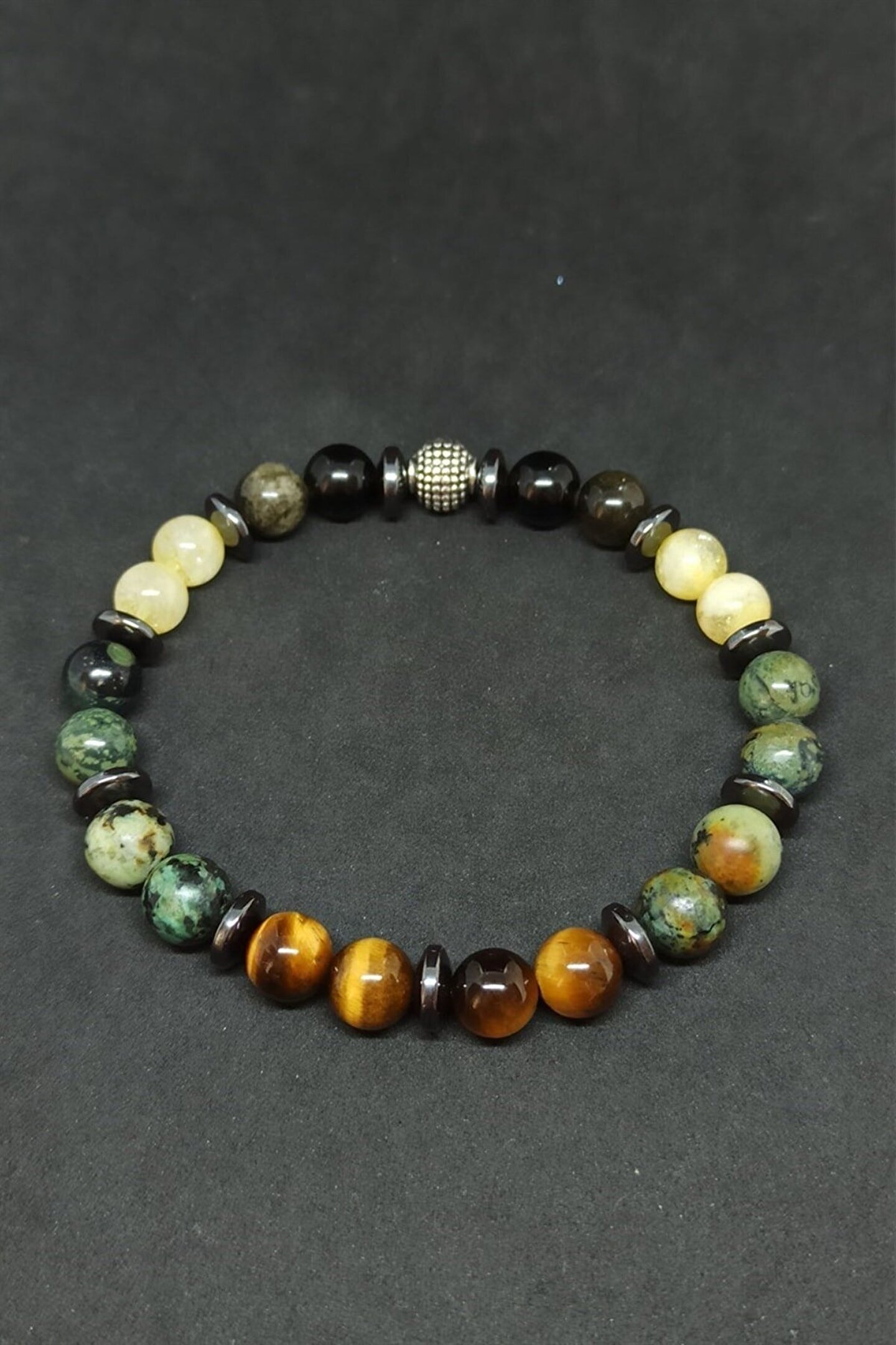 Kaplan Gözü Afrika Turkuazı Karma Doğal Taş Erkek Bileklik Kaplan Gözü Taşı Astım hastaları için faydası olduğuna inanılan bir taştır. ; Kişinin karar vermesine yardımcı olur. ; Kişinin algı gücünü arttırır. ; Hafızayı kuvvetlendirir. ; İnatçılığı azaltır ve duygusal bakımdan dengeleyici bir taştır. ; Sahiplenme duygusunu güçlendirir. ; Para kazanmak için gerekli el becerilerini arttırır. ; Hayatlarında değişiklik yapmayı düşünenlerin tercih etmesi gereken taş kaplan gözü taşıdır. ; Beynin sağ ve sol loblarının dengeli çalışmasını sağlar. ; Kanı toksinlerden temizlediği bilinmektedir. ; Sindirim sistemini düzenleyici bir etkisi vardır. ; Kemik kırıklarının kaynamasına yardım eder Turkuaz Taşı Kişiye başarı ve güç getirir. ; Akıl ve mantık gücünü geliştirir. ; Şans getirdiğine inanılır. ; Kaygılı düşüncelerden uzaklaşılmasına yardımcı olur. ; Kişinin huzursuzluklarını giderir. ; Nazardan koruduğuna inanılır. ; Hücreleri yenileyerek bedeni güçlendirir,yaşlanmayı geciktirir. ; Sindirim sistemine iyi gelir. ; Tansiyona iyi geldiği bilinir. ; Öksürüğe iyi gelir Sitrin Taşı: zihni berraklaştırır. ; Üzerinde taşıyan kişiye mutluluk ve neşe duyguları verir. ; Sitrin taşı bolluk ve bereketi kendisine çeker. ; Başarı getirdiğine inanılır. ; Sanatçılar tarafından tercih edilen bir taştır,yaratıcılığı artırdığına inanılır. ; Kişinin kendisini ifade etmesini kolaylaştırır. ; Bağışıklık sistemini güçlendirir. ; Anti oksidan etkilidir. ; Böbrek, kolon sindirim organları, ciğerler ve kalp için faydalı bir taştır. ; Bilekliklerimiz Ortalama 17-18 Cm Ebatındadır Obsidyen Taşı: Enerji taşıdır.Güne daha dinamik bir şekilde başlamanıza yardımcı olur. ; Akıl ve mantık gücünü arttırır. ; Mantıklı davranıp doğru kararlar almanıza yardım eder. ; Algılarınızı açar,iletişiminizi güçlendirir. ; Heyecanınızı kontrol altında tutmanızı sağlar. ; Strese en iyi gelen taşlardan biridir. ; Depresyona ve karamsarlığa iyi gelir. ; Eklem ağrılarına iyi gelir. ; Sindirim sistemini düzenler,mide ve bağırsak rahatsızlıklarını giderir. ; Hematit Taşı Kişinin kendisine güven duymasına ve kontrol etmesine yardımcıdır. ; Birey ve toplum arasındaki ilişkilerde denge görevi görür. ; Olumsuz enerjiyi gidermeye yardımcıdır. ; İlişkiler üzerinde olumlu etkisi vardır Tüm çakraları dengeler. ; Uykusuzluğa iyi gelir. ; Kan dolaşım sistemini düzenler, kalbi sağlıklı tutar, kan basıncını dengeler. ; Mafsal romatizması ağrılarını hafifletir. ; Harap olmuş, hasar görmüş dokuların yeniden oluşmasına yardım eder. ; İskelet sistemi hastalıklarına iyi gelir.;