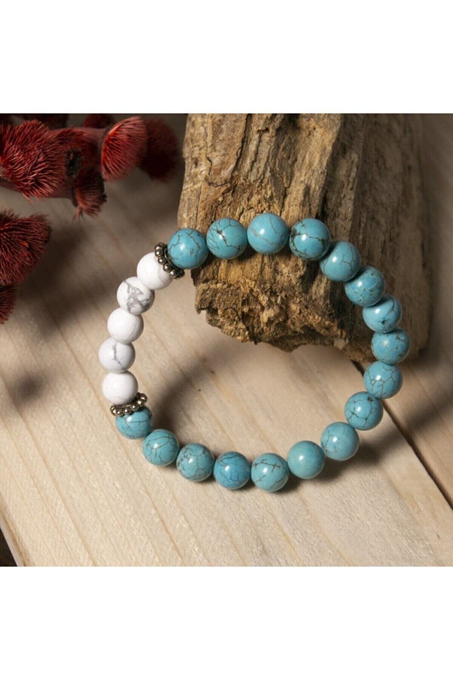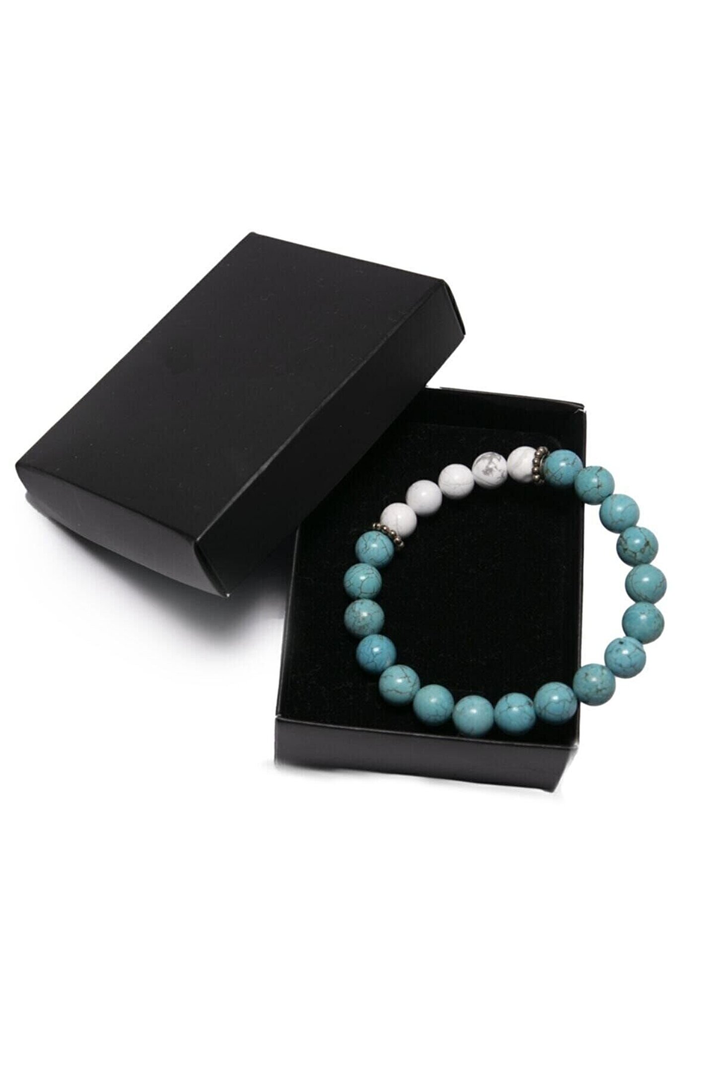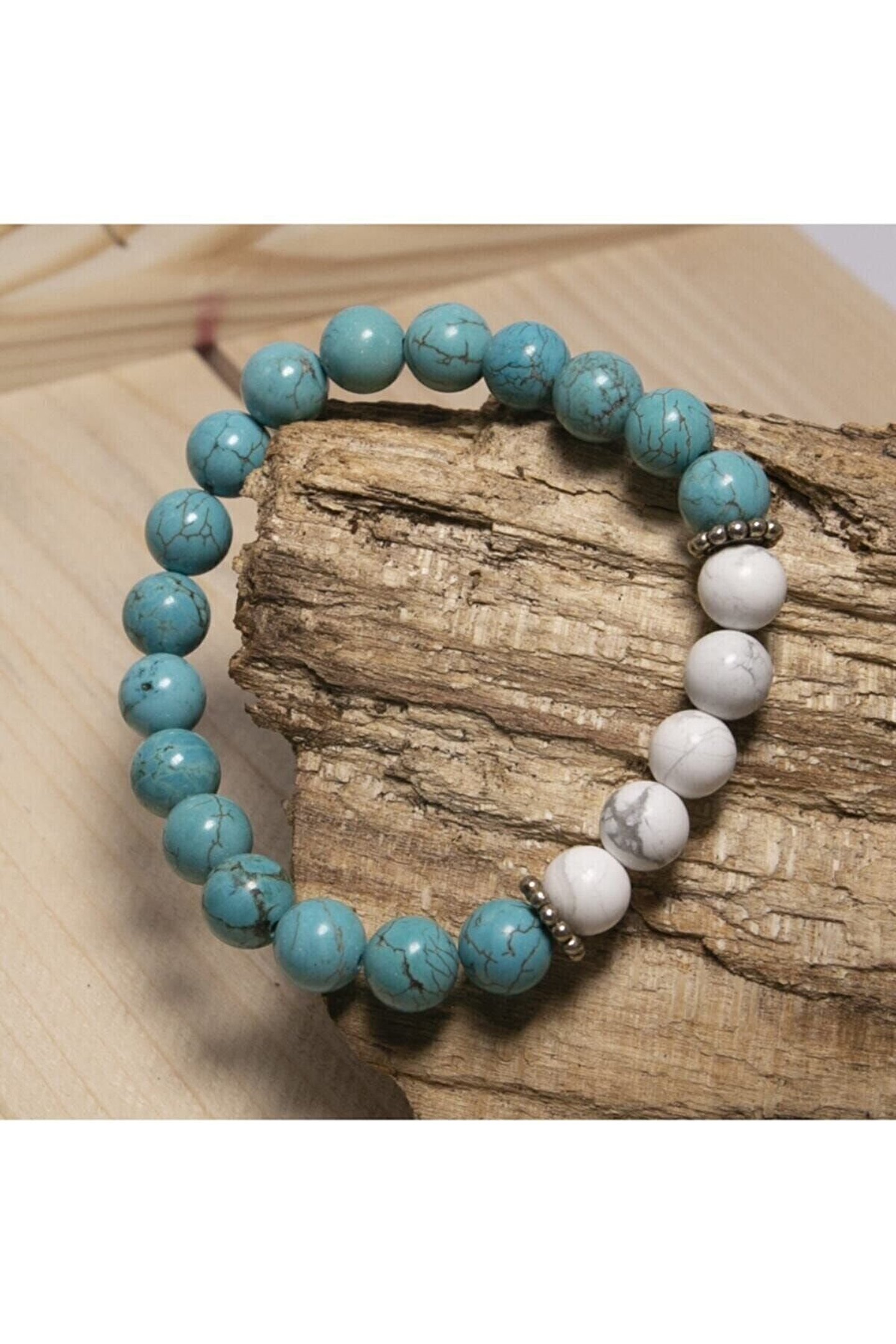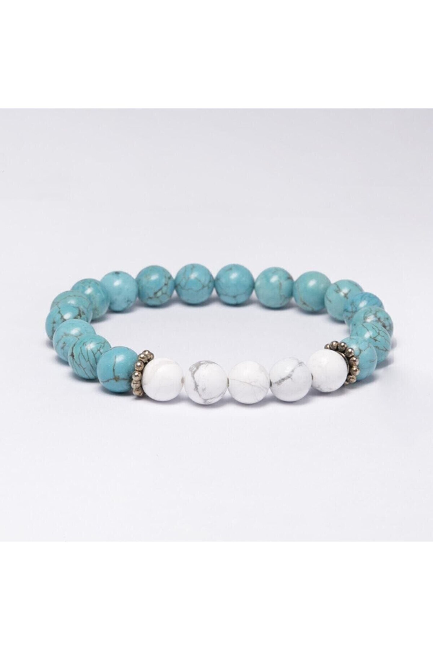 Doğal Turkuaz ve Havlit Taşları: Daha cazibeli ve daha mutlu olmayı vaat ediyor.; Turkuaz belki de insanlık tarihindeki en eski taş, kralların, şamanların tılsımıdır. Sanki cennetten yeryüzüne kaymış gibi, güçlü ve opak bir koruma taşıdır.; Masmavi turkuaza dokunuş kişiyi yatıştırır. Ruhsal dalgalanmaları önler. ; Cinsel cazibeyi ve dişil özellikleri arttırır. Cinsel sorunların çözümüne yardım eder. İnsanlarla iletişiminizi kuvvetlendirir. ; Stres giderici, mutluluk taşı olan HAVLİT sizi sakinleştirir, içinizdeki fırtınayı baskılar ve öfkenizi azaltır. ; Ilımlı ve dengeli düşünmeyi sağlar.; Havlit işyeri ve ofiste gerginliği giderirken, turkuaz bereketi getirir ; Turkuaz ve Havlit modelimiz ortalama 22-23 adet 8mm A kalite Gerçek Doğal Taştan oluşur.; Bileklikte kullanılan 925 ayar GÜMÜŞ ile doğal taşın etkisi arttırılmıştır. ; Bileklik dayanıklı elastik ip nedeniyle her bileğe uyumludur. Siparişiniz özel Lc19 kutusunda gönderilecektir. ;