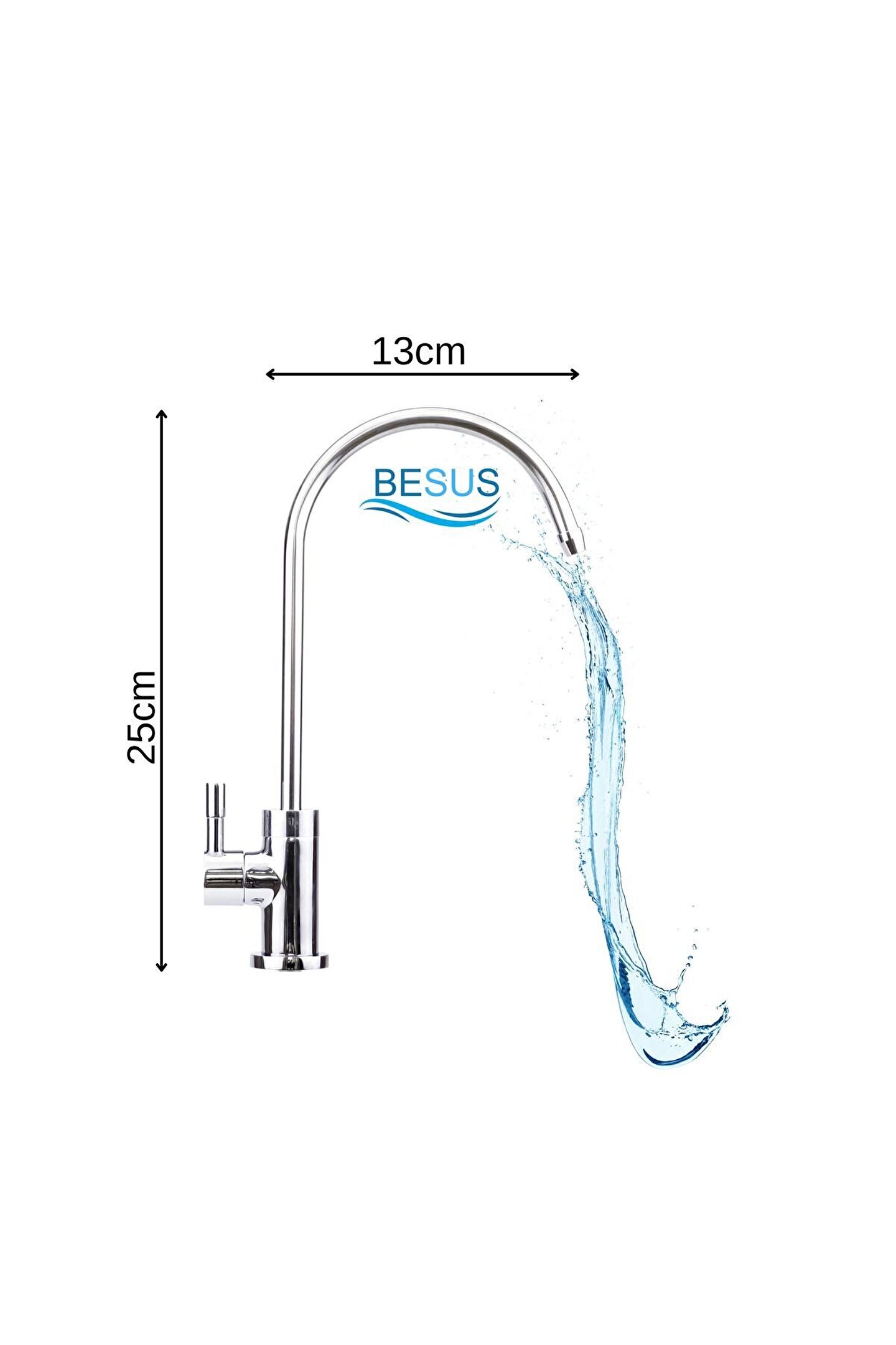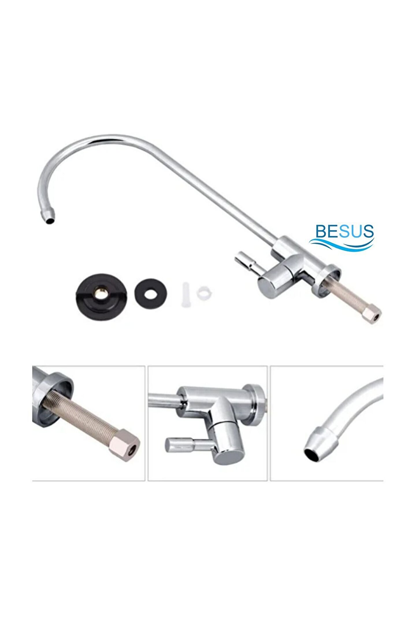 Tüm su arıtma cihazlarına uygundur. ; Kaliteli bir üründür. ; Uzunluğunda vidalı bağlantı emsallerinden oldukça uzundur ve her türlü kalınlığa sahip tezgahlara bağlantı yapılabilir. ; Uzatma aparatına gerek duyulmaz. ; Besus Su Arıtma Cihazı İçin Lüx Paslanmaz Krom Musluk Tüm su arıtma cihazları ile uyumludur. Su arıtma cihazlarında su almak için kullanılan, tezgâh üstüne monte edilen tek kollu deve boynu modeli pratik ve kullanışlı paslanmaz krom su arıtma musluğudur. Piyasadaki kaplama ürünler ile karıştırmayınız. Ürün paslanmaz kromdan olup son derece kaliteli ve 2 yıl garanti sürecine dahildir.Arıtıcı musluğu Arıtmalı Musluk Su Arıtma Musluğu Çeşme Eviye Bataryası