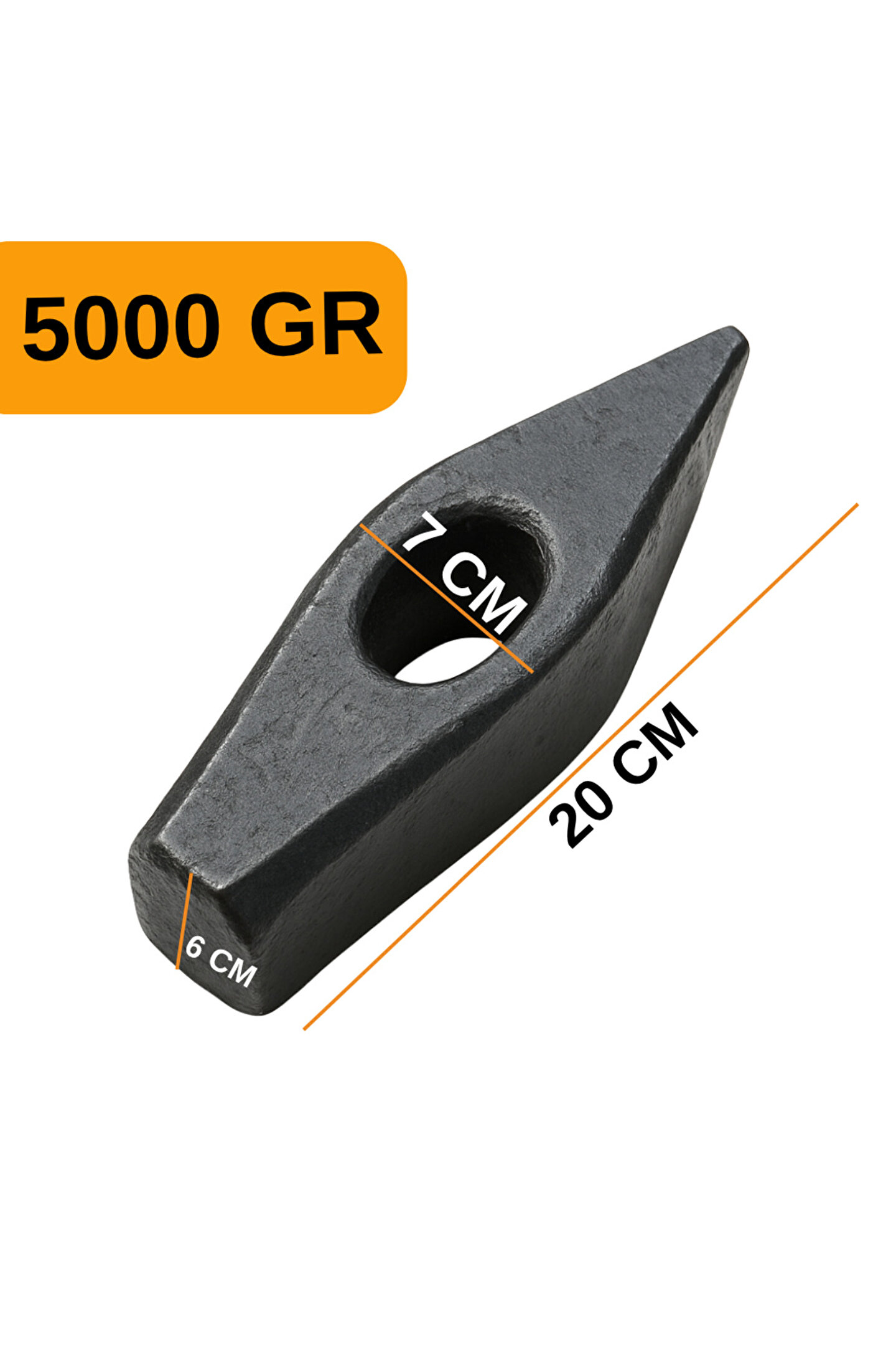 ; Dayanıklı: 5 KG ağırlığındaki bu balyoz başı, yüksek mukavemetli dövme çelikten üretilmiş olup ağır darbelere karşı maksimum direnç sağlar.; ; ; Çok Amaçlı: Yassı ve sivri uçlu çift taraflı tasarımıyla beton, taş ve metal yüzeylerde güçlü kırma, yıkım ve şekil verme işlemleri için uygundur.; ; ; Profesyonel Kullanım: Ağır sanayi, büyük ölçekli inşaat projeleri, yol yapımı ve şantiye yıkım işlerinde üstün sunar.; ; ; Uyumlu: Standart ve kalınlaştırılmış balyoz saplarına uyumlu 3 cm çapında sap giriş bölümüyle, sap değişimi kolay ve güvenlidir.; ; ; Güvenilir: Denge merkezi optimize edilmiştir; profesyonel işlerde kontrollü güç aktarımı sağlar, iş güvenliğini artırır.; ; ; Uzun Ömürlü: Korozyona dayanıklı yüzey kaplaması ve güçlendirilmiş yapı sayesinde uzun yıllar performansını korur.; ; ; Endüstriyel Standart: Yoğun ve profesyonel kullanım için geliştirilmiş, ağır hizmet tipi balyoz başı, endüstriyel kalite güvencesiyle üretilmiştir.