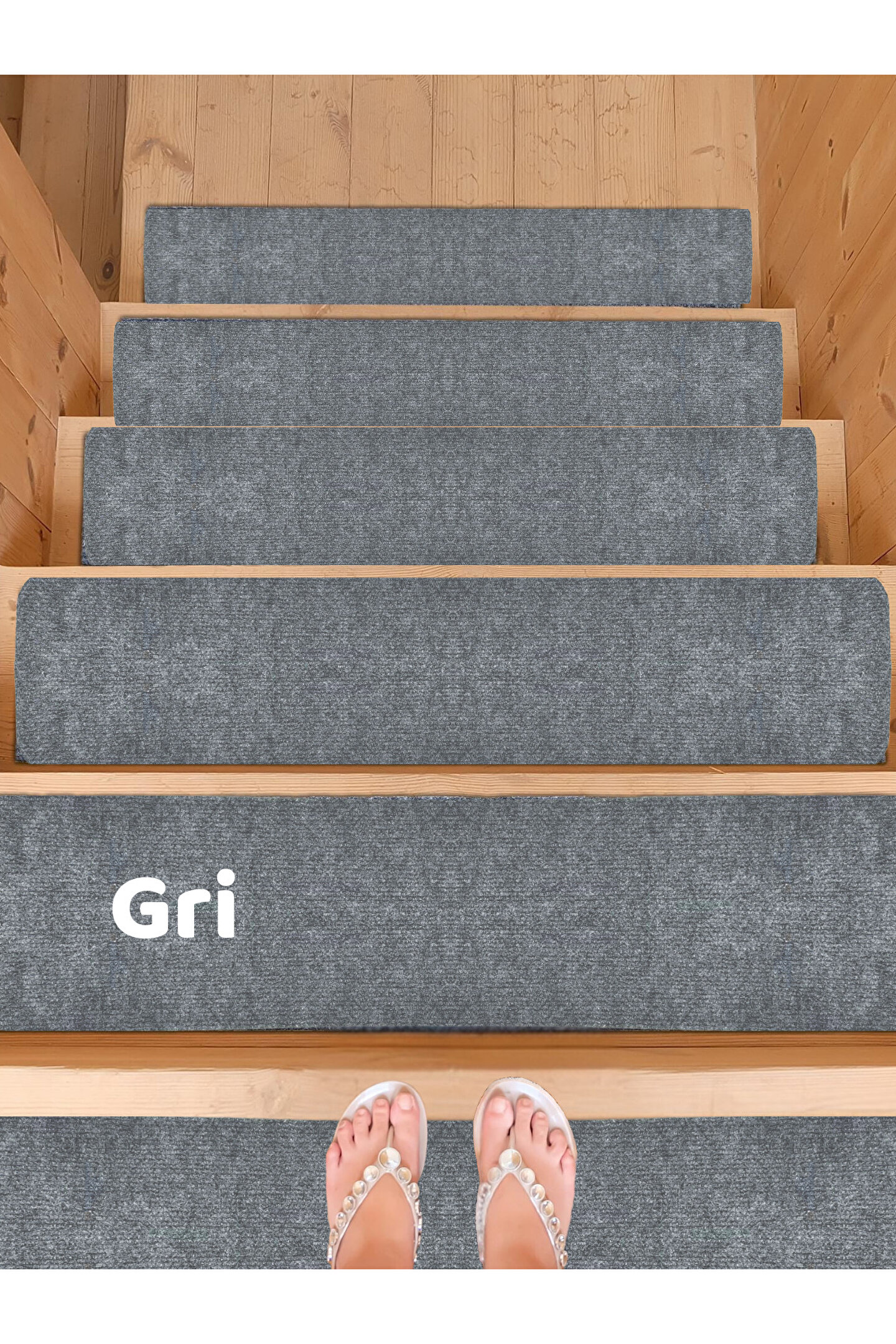 BEYLİNİ Merdiven Halısı Basamak Halısı Keçe Kaymaz Taban Yapışkanlı Halıfleks Gri 1li 20x75 Cm