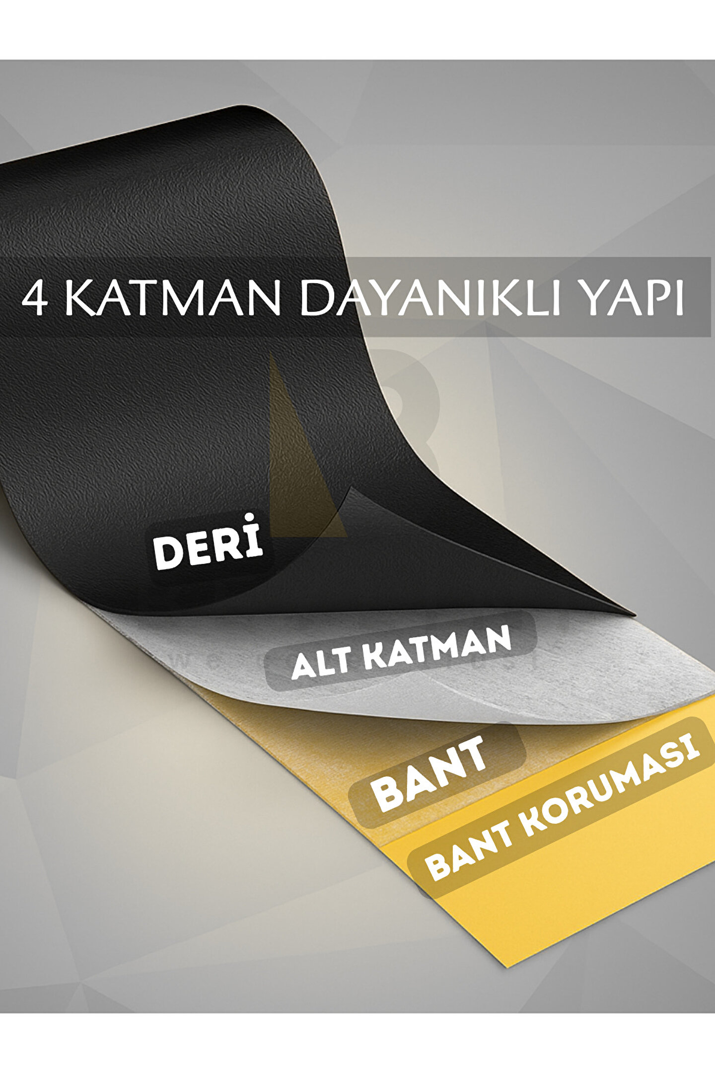 Malzeme: Yüksek Kaliteli malzeme ile üretim yapılmıştır, Kendinden yapışkanlı ürünümüzde bir sorun ile karşılaşma durumu en aza indirilmiştir.; Temizlenebilir: Deri tamir bantı ürünümüzü bir bez ile rahatlıkla temizleyebilirsiniz.; Hijyenik: 4 Katmandan Oluşan Ürünümüzde Kararma, iz bırakma, lekelenme, kolay kirlenme gibi görüntüler ile karşılaşılmaz.; Kesilebilir: Ürünü istediğiniz boyutta, istediğiniz şekilde sorunsuzca kesebilir ve istediğiniz kişiye özel, kendinize göre ayarladığınız ölçüde kullanabilirsiniz.; Kolay kullanım: Ürün yüksek kaliteli yapışkan ile kendinden yapışkanlıdır, sarılı olduğu kağıdı çıkarıp kolay bir şekilde yüzeye uygulayabilirsiniz.; Uyumluluk: Her türlü yüzeye problem olmadan sorunsuzca uygulanabilir kaliteli bantımız sayesinde düşme, atma gibi durumlar olmaz.; Su geçirmez: 4 Katmandan oluşan Deri Tamir Kiti Ürününümüz herhangi bir su ile temasta suyu engeller, arka tarafa geçiş sağlatmaz.; Tasarruf: Yeni bir ürün veya bir kaplama almak yerine olan kaplamayı en az maliyet ile eskisinden daha iyi hale getirebilirsiniz.; Uyguladığınız alana hoş bir görüntü katar.;