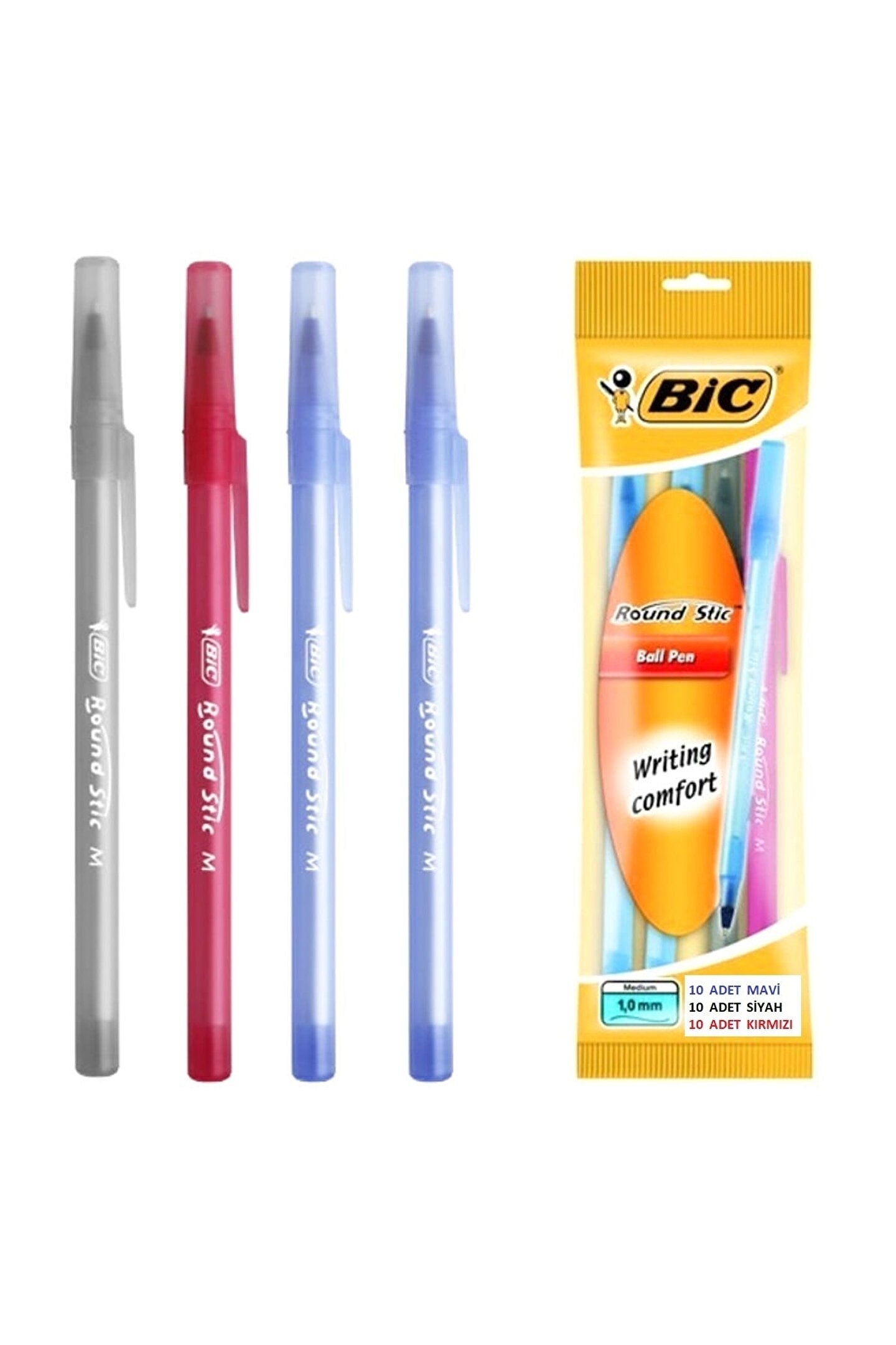 Bic 920568 round stic tükenmez kalem 1.0 siyah 30 lu set ... 10 mavi +10 siyah+10kırmızıklasik bıcraunde original kalem dünyanın en çok satan tükenmez kalemidir ve bu 30 lu set ekonomik ve kullanışlıdır. 1,0 mm’lik orta uç kalınlığı, kağıdın üzerinde benzersiz bir rahatlıkta kayarak dağılmayan yumuşak bir yazı deneyimi sunar. Sade ve güvenilir etkin tasarım ; Mürekkep seviyesini kontrol edebileceğiniz şeffaf bir gövdeye sahiptir. Süper dayanıklı bıc cristal original'ın ortalama 3 km yazmaya yetecek kadar mavi mürekkebi vardır. ;