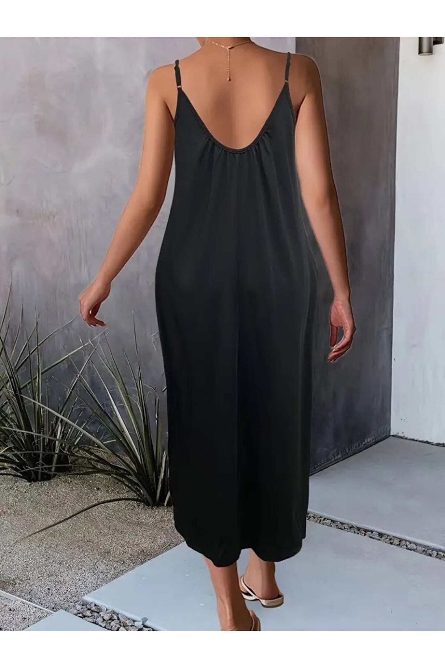 Kadın Ip Askılı Geniş V Yakalı Viskon Elbise