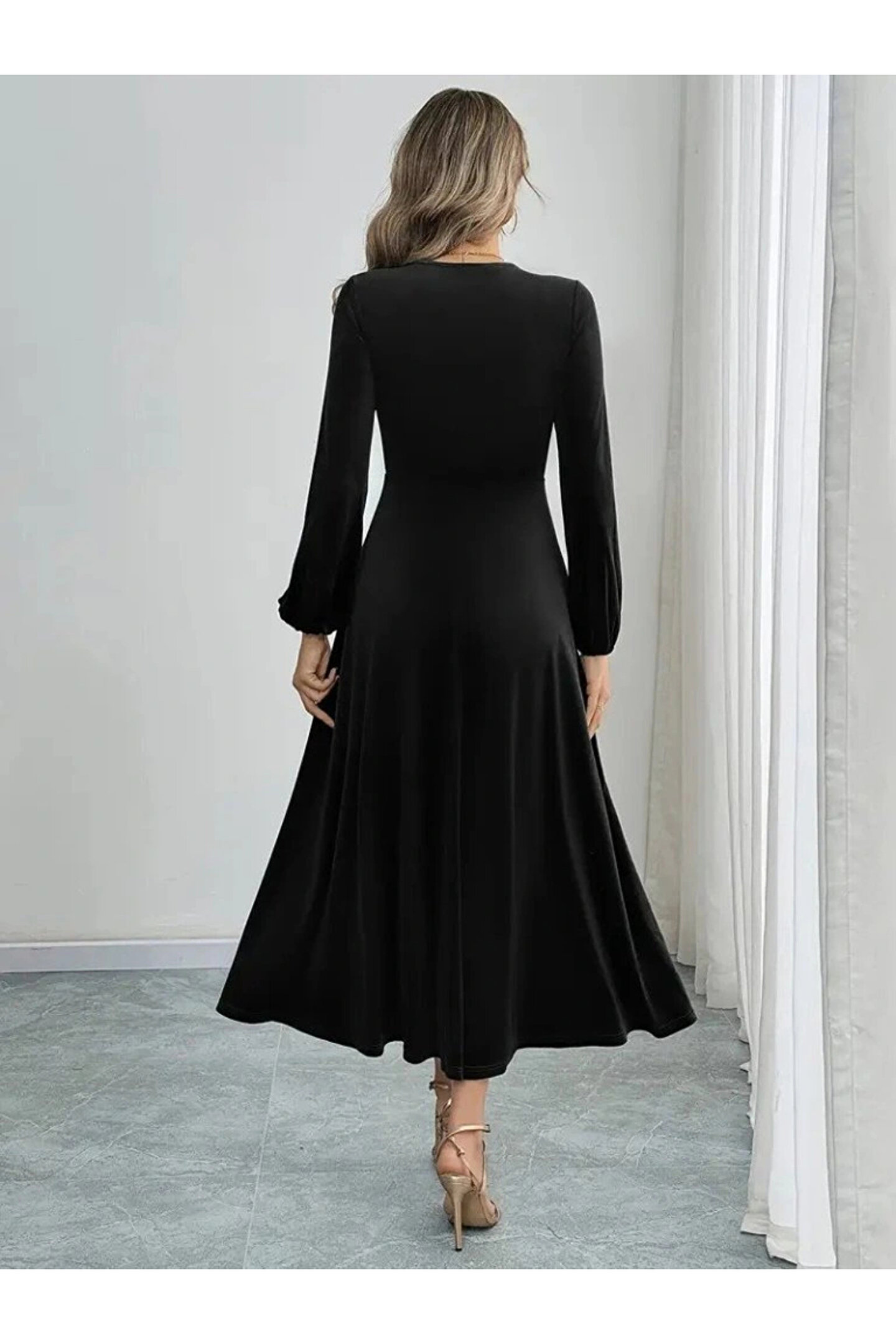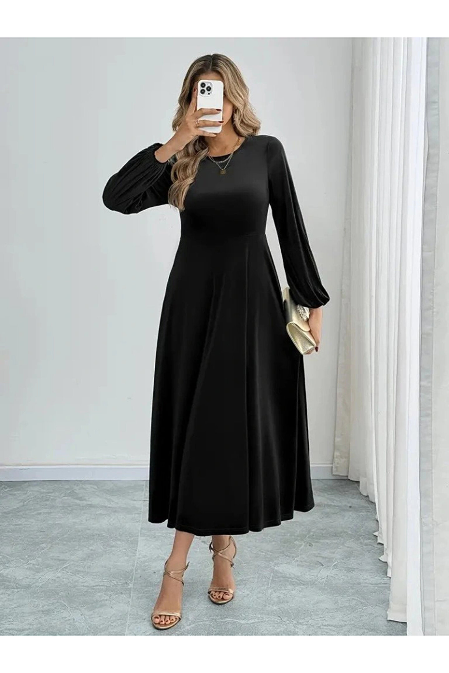 Bijuterria Kadın Uzun Kollu Bisiklet Yaka Midi Kadife Elbise