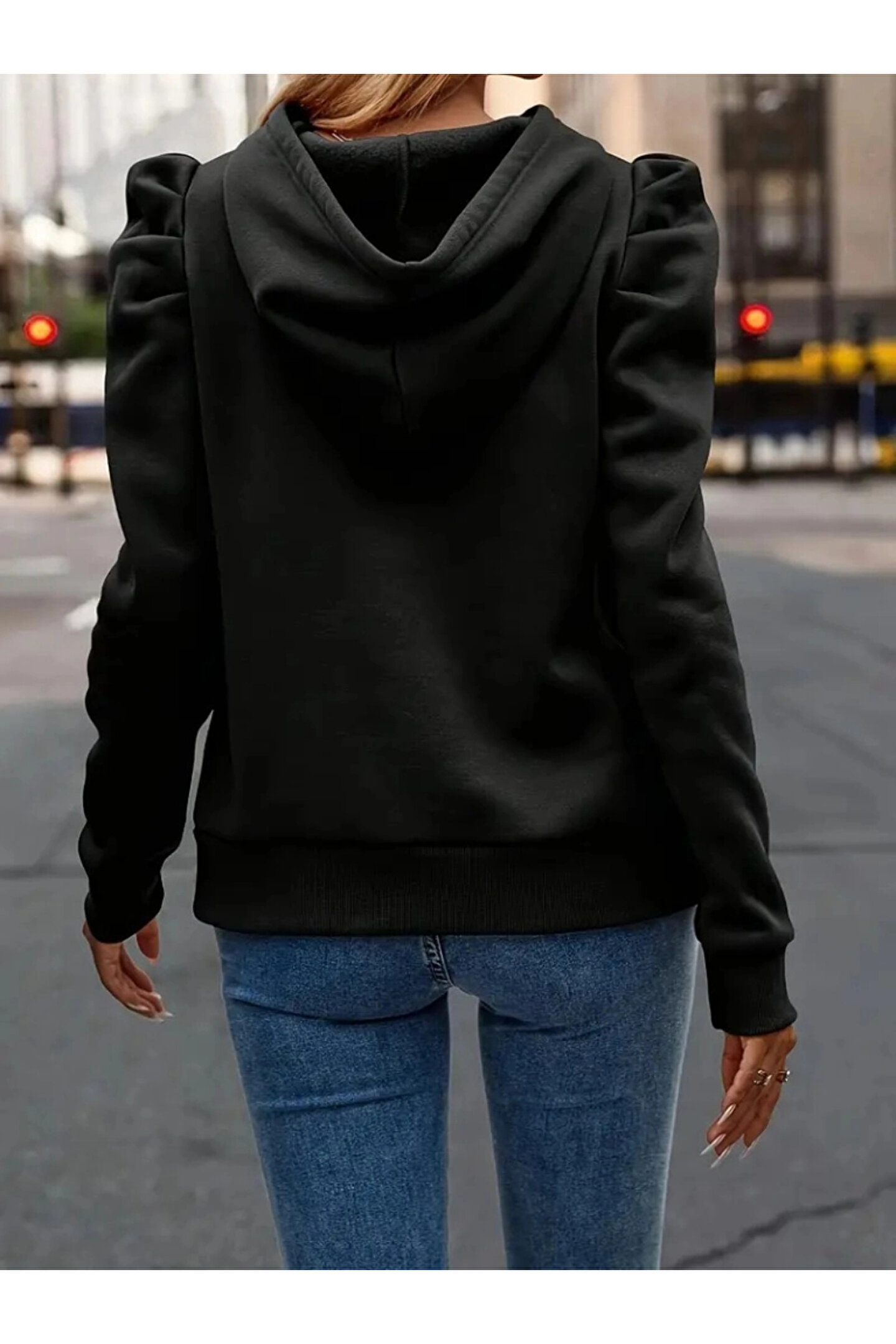Bijuterria Kadın Uzun Kollu Kapşonlu Bağcıklı Kollarda Büzgü Detaylı Iki Iplik Bluz