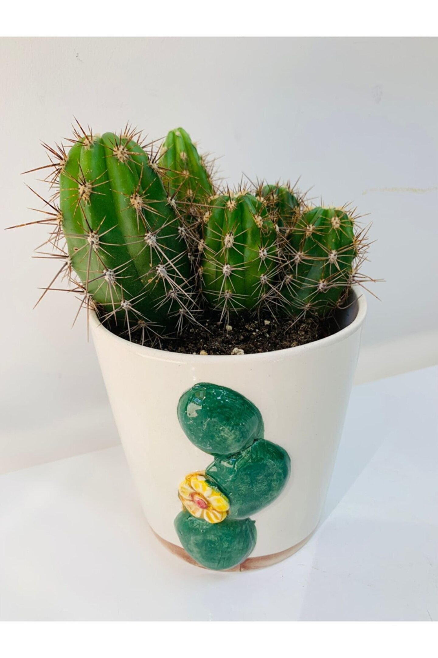 21 cm boyunda 12 cm çapında seramik saksıda ekili kaktüs