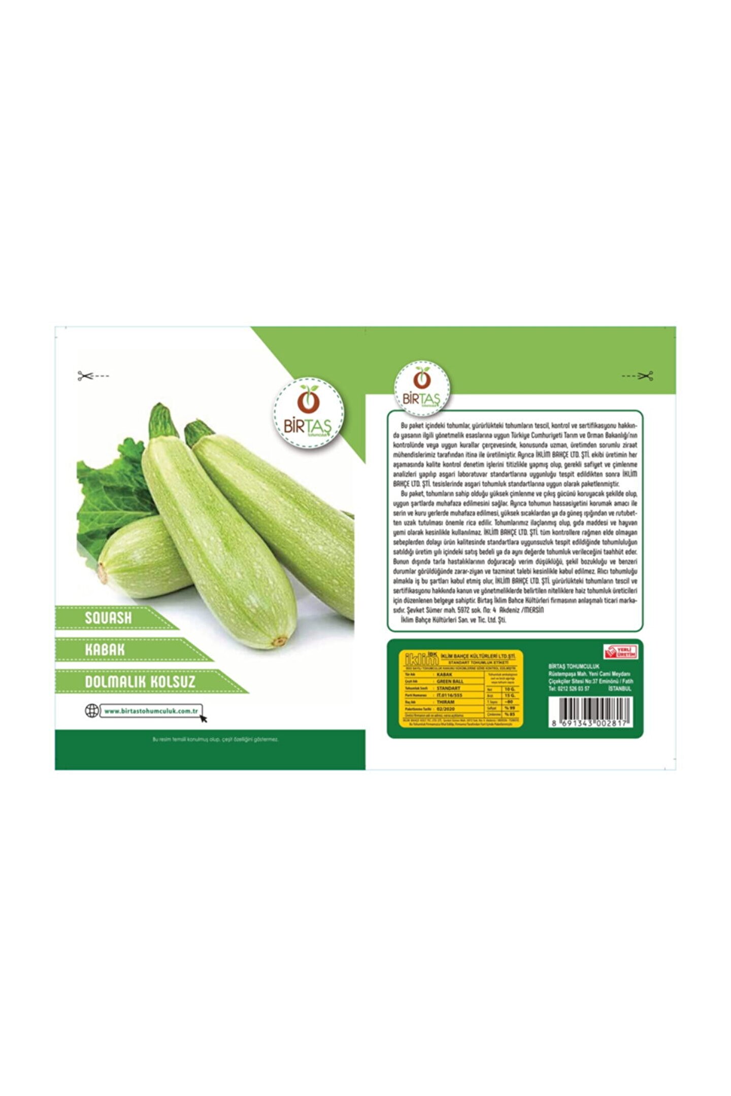 Birtaş Dolmalık Kabak Tohumu