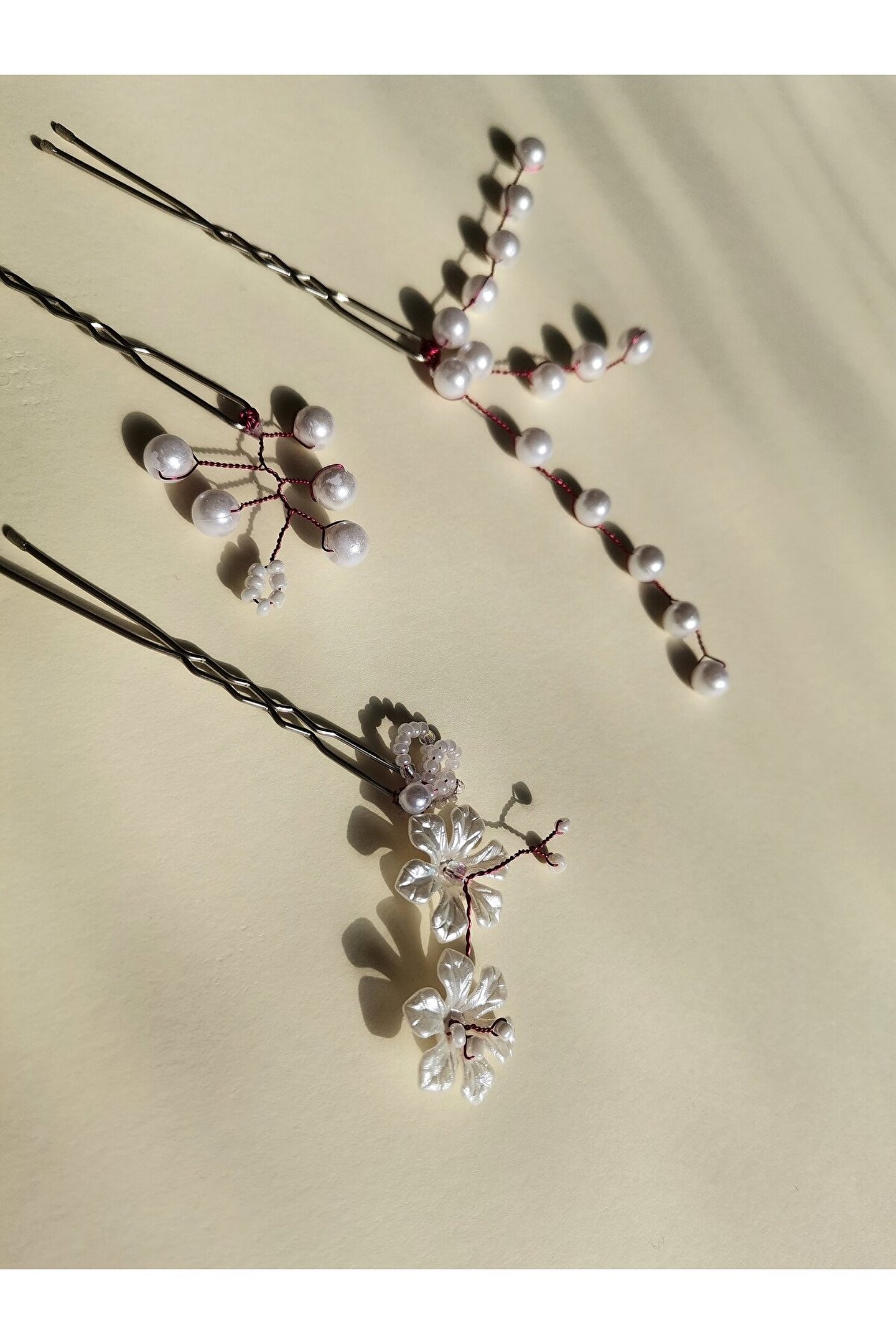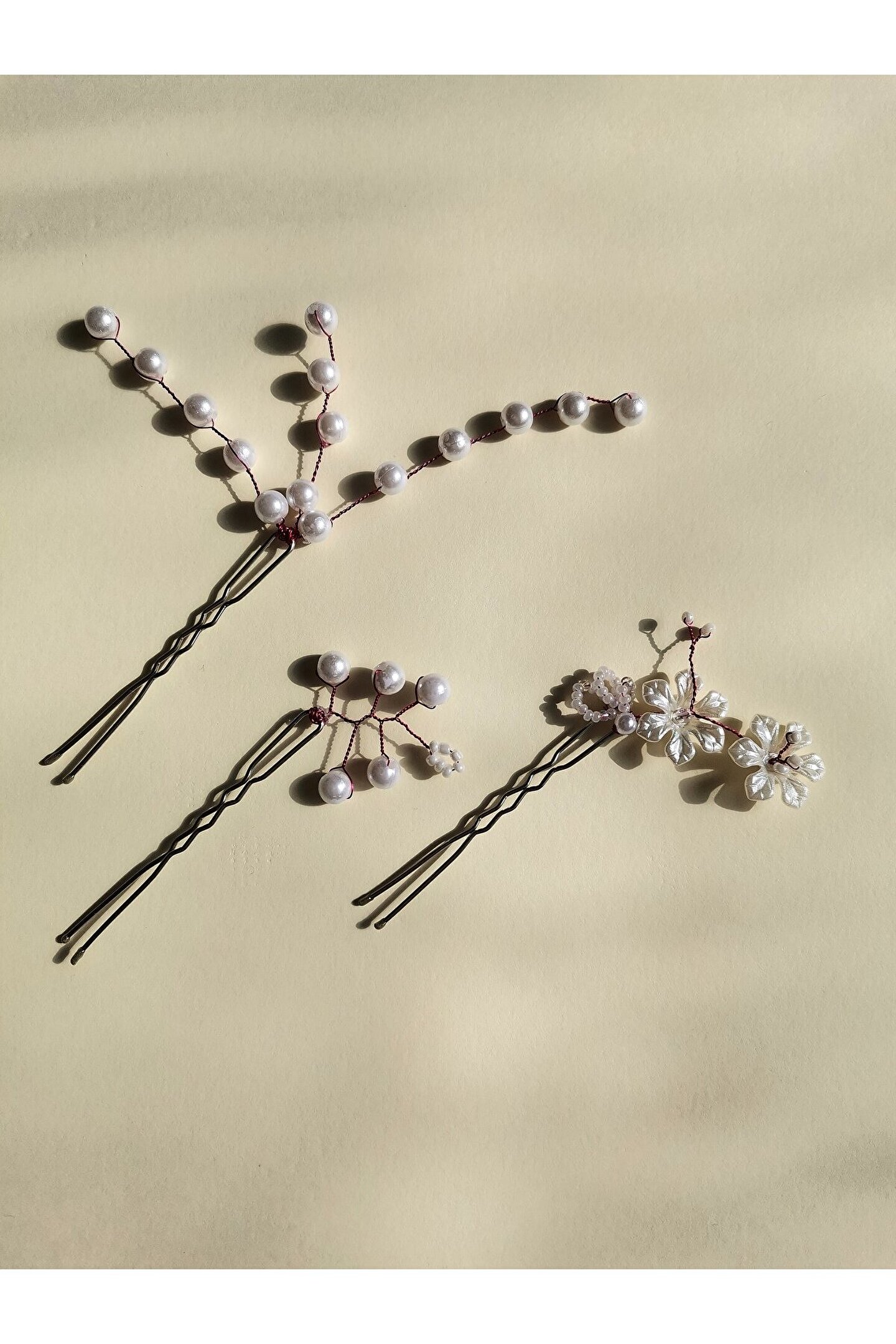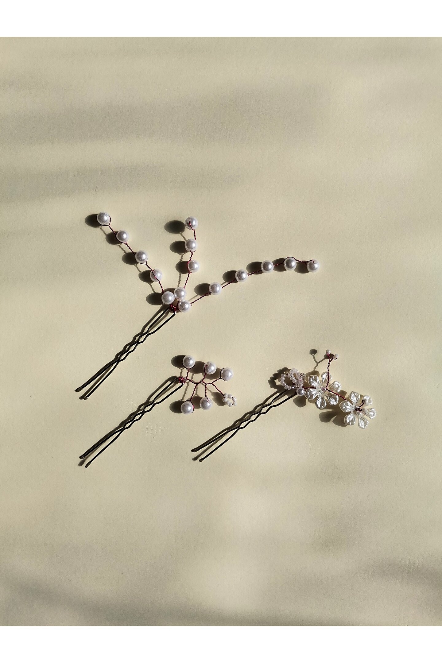 Bivalvia Accessories Beyaz İnci Boncuklu Firkete Toka Seti