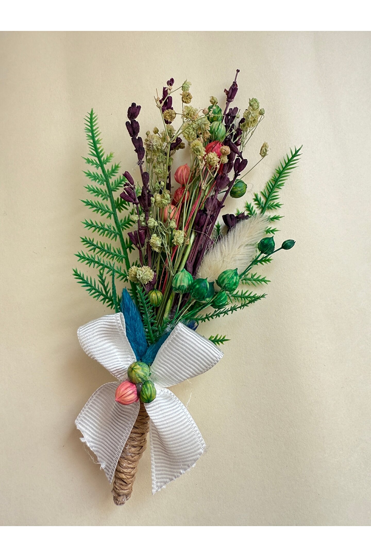 İthal çiçekler ve yapay çiçekler ile hazırlanan özel tasarım damat yaka çiçeği