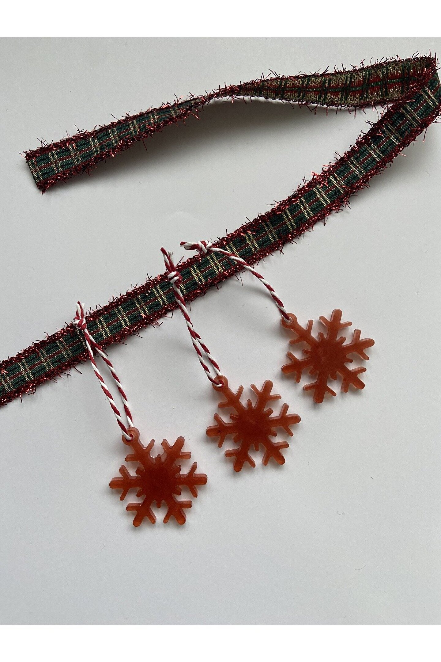 Kar tanesi formunda hazırlanan özel tasarım el emeği epoksi yılbaşı ağacı süsü.