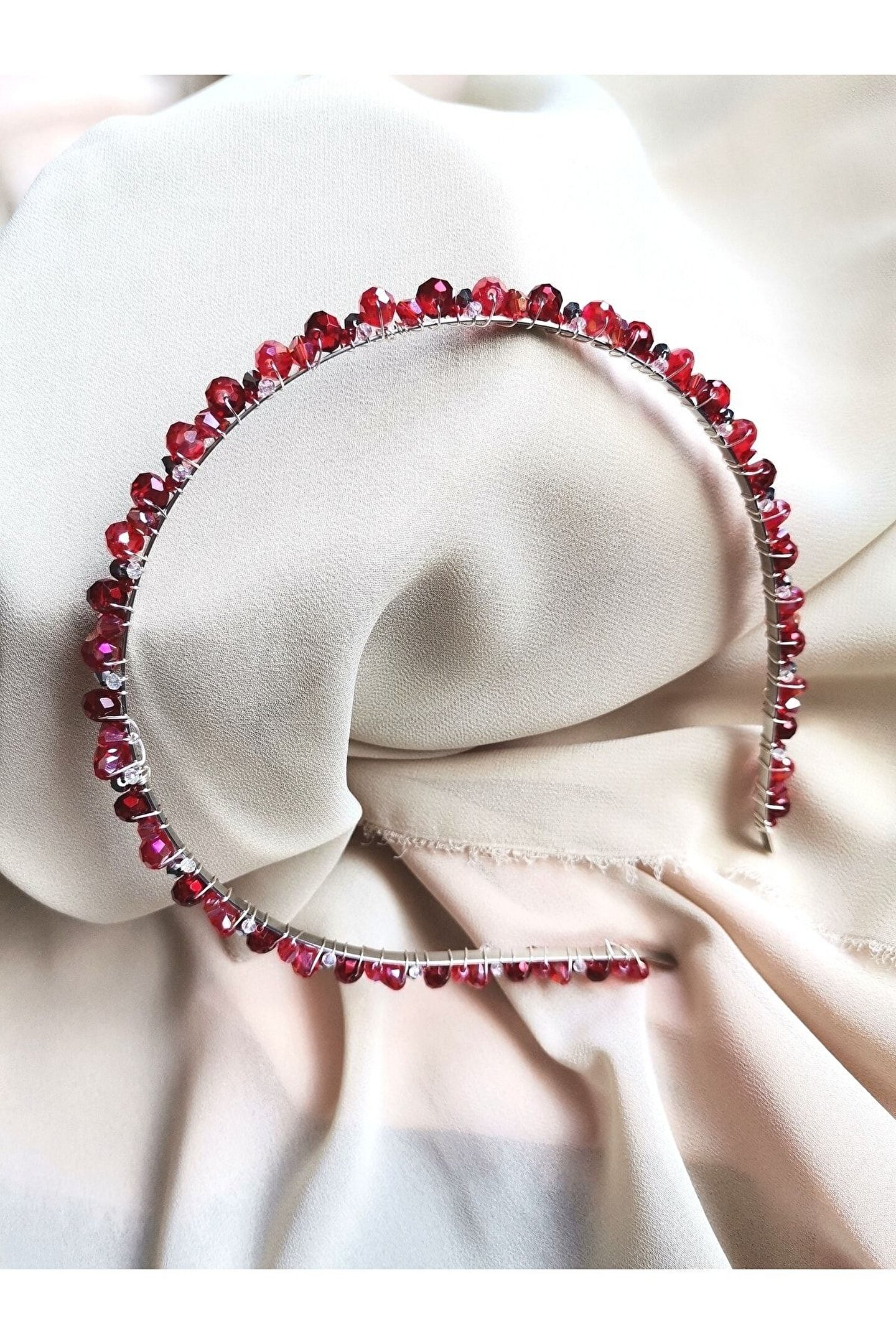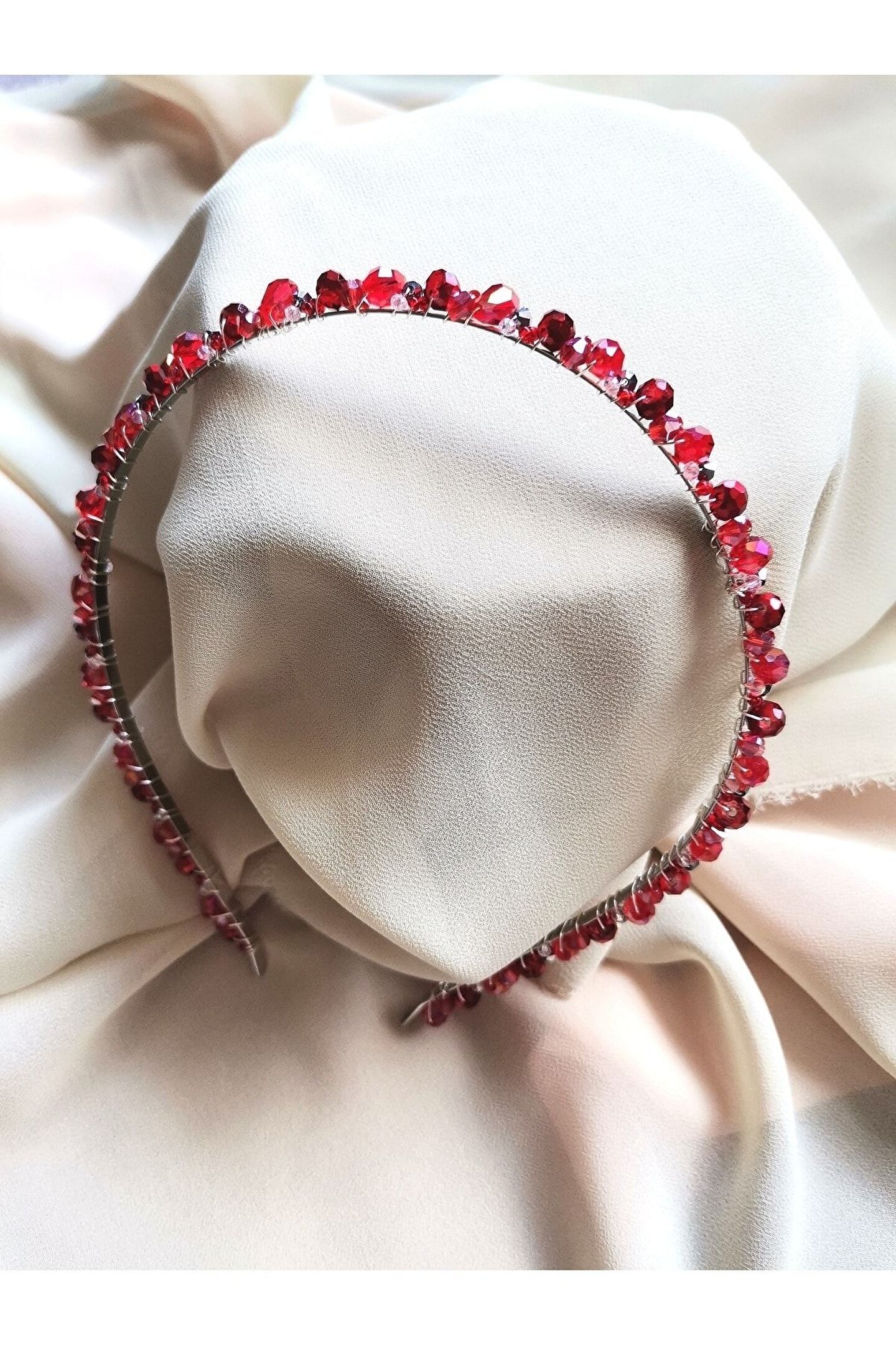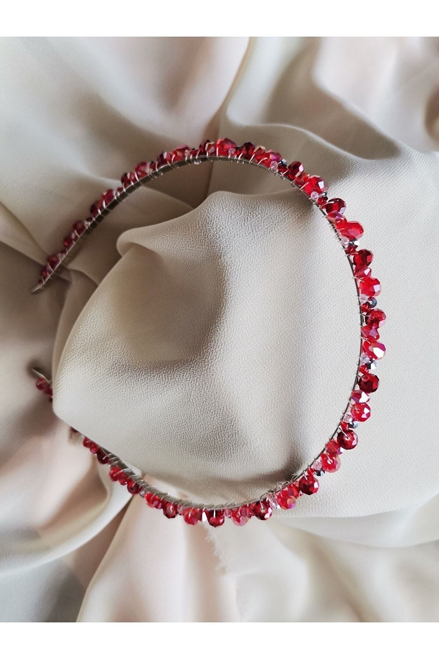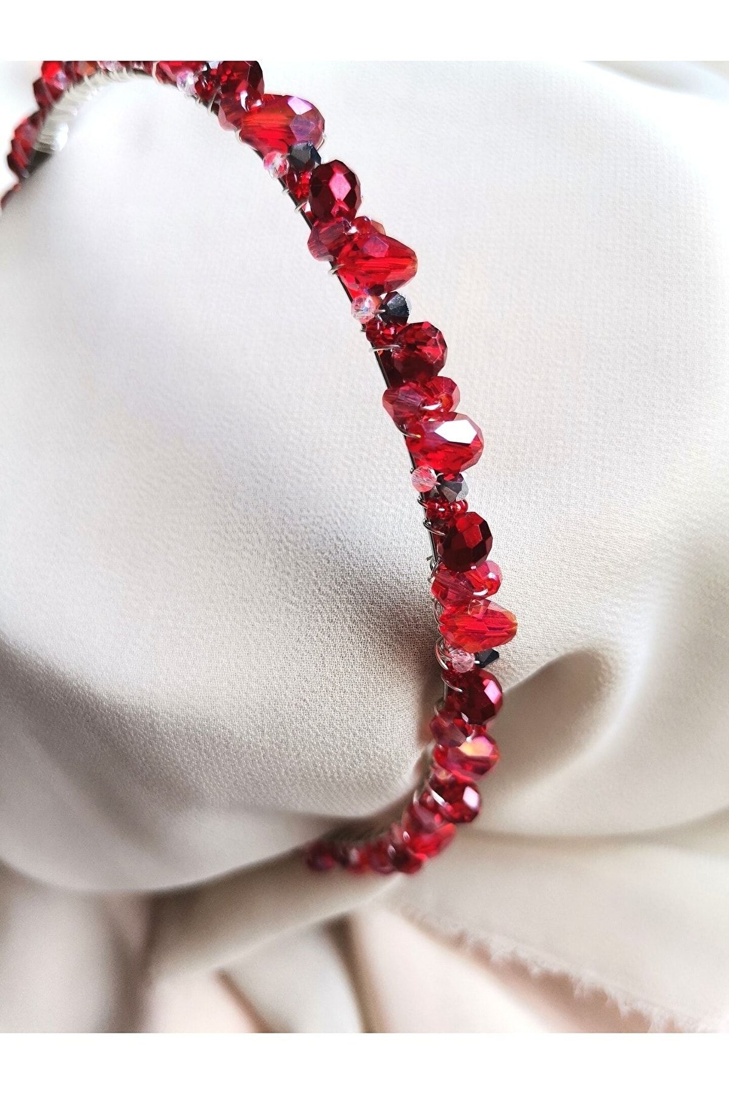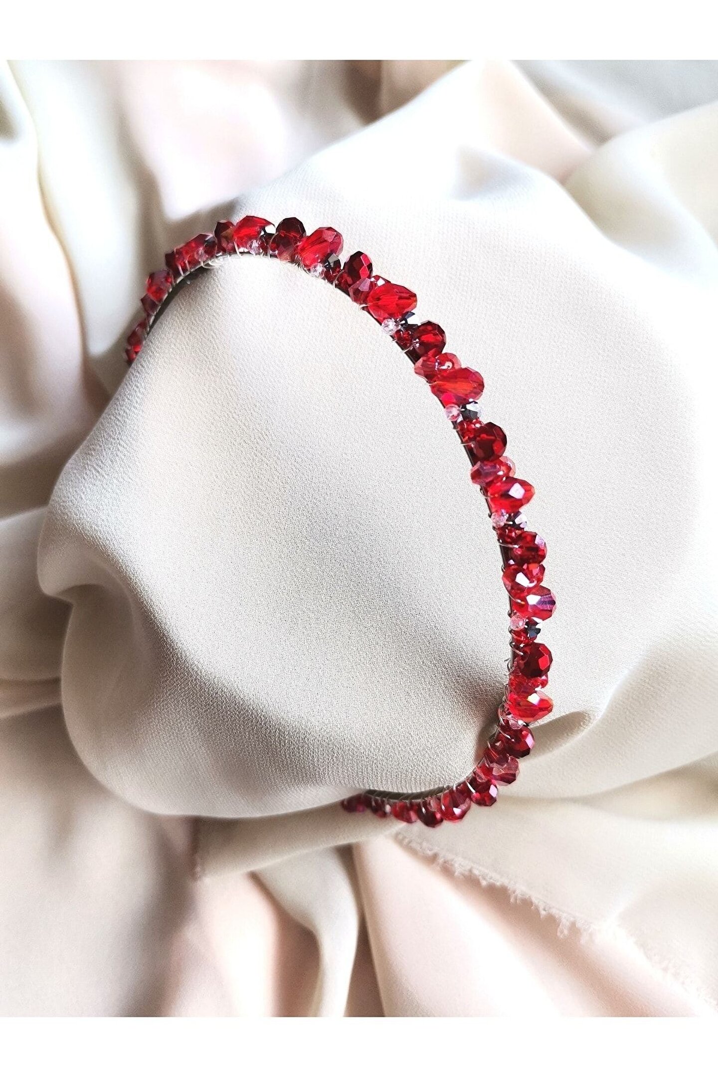 Kırmızı kristaller ile hazırlanan özel tasarım taç