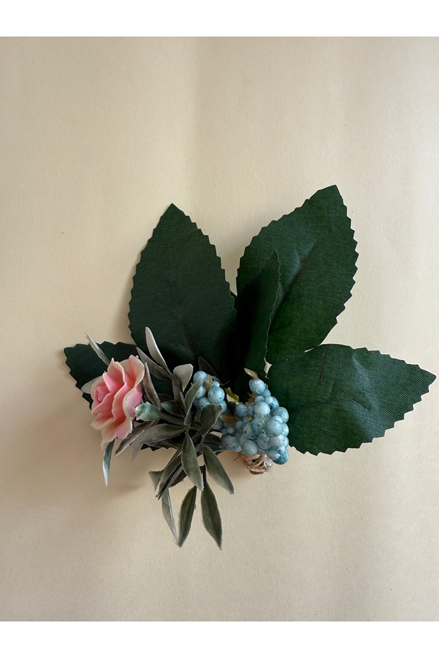 İthal kuru çiçekler ve yapay çiçekler ile hazırlanan özel tasarım damat yaka çiçeği