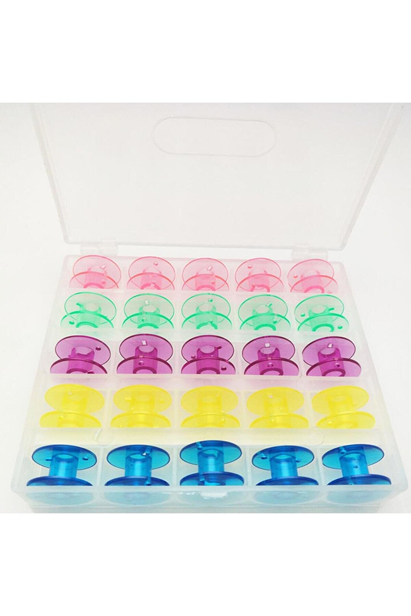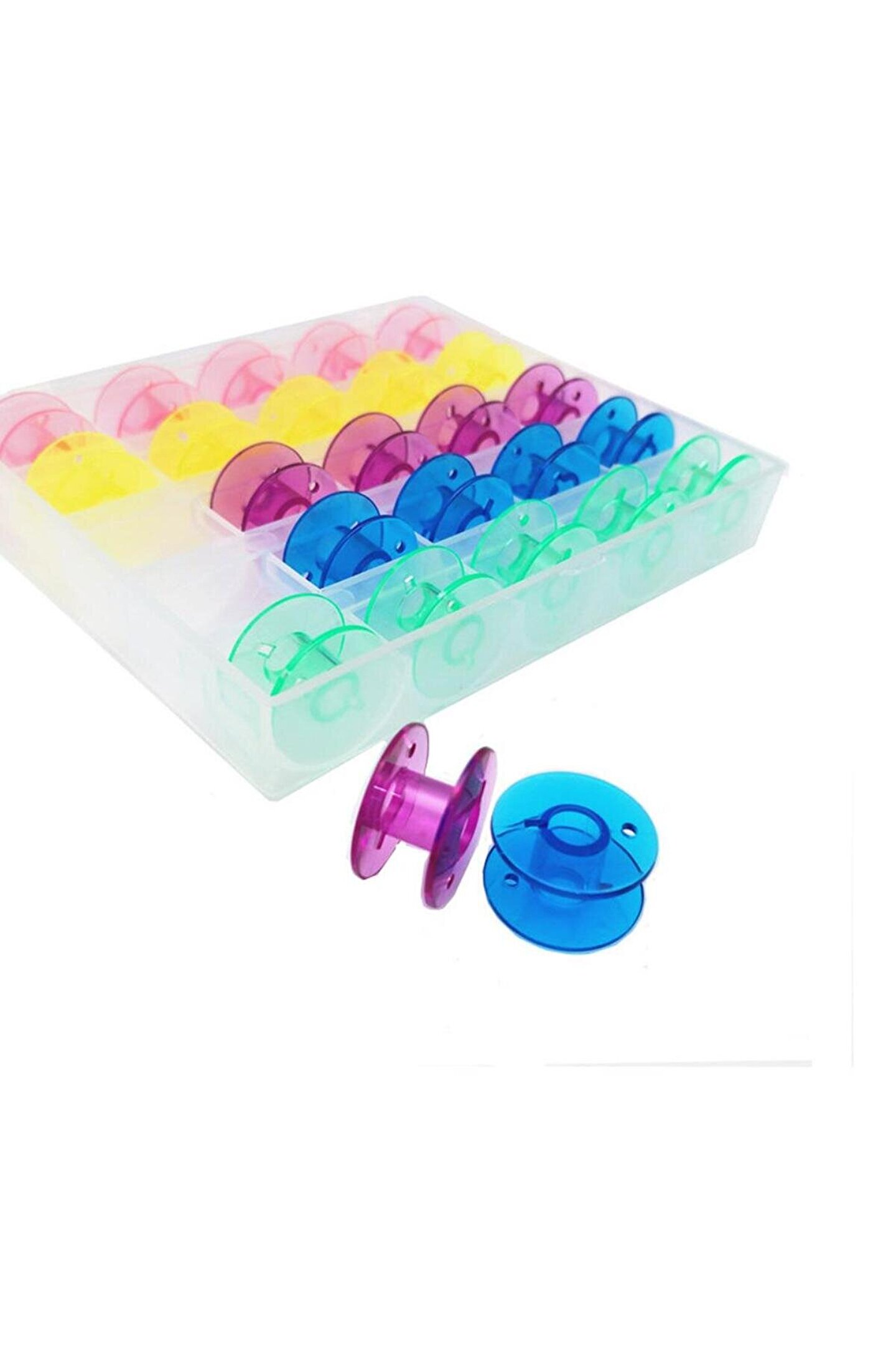 Ev Tipi Dikiş Makinesi Masurası Renkli ve Plastik 25 Adet Ev tipi makinalar için uyumludur.; Masura Çapı 2cm (20mm) ölçüsündedir.; Plastik malzemeden üretilmiştir.25li masura şeffaf kutu içerisinde gönderim yapılır.; Ürün Kodu: Y11.00338