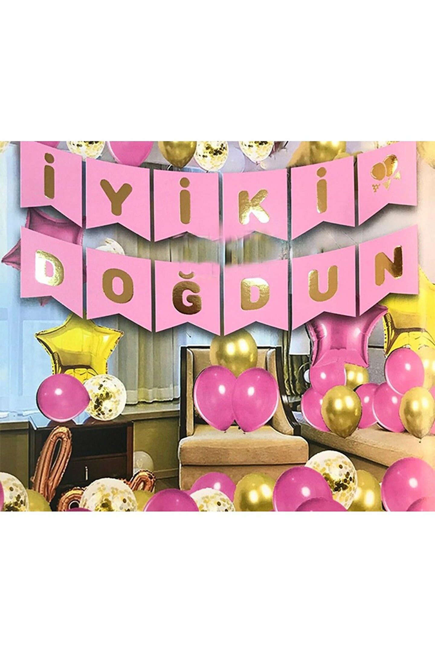 Parlak Yaldızlı Banner Iyiki Doğdun Pembe Gold Renk