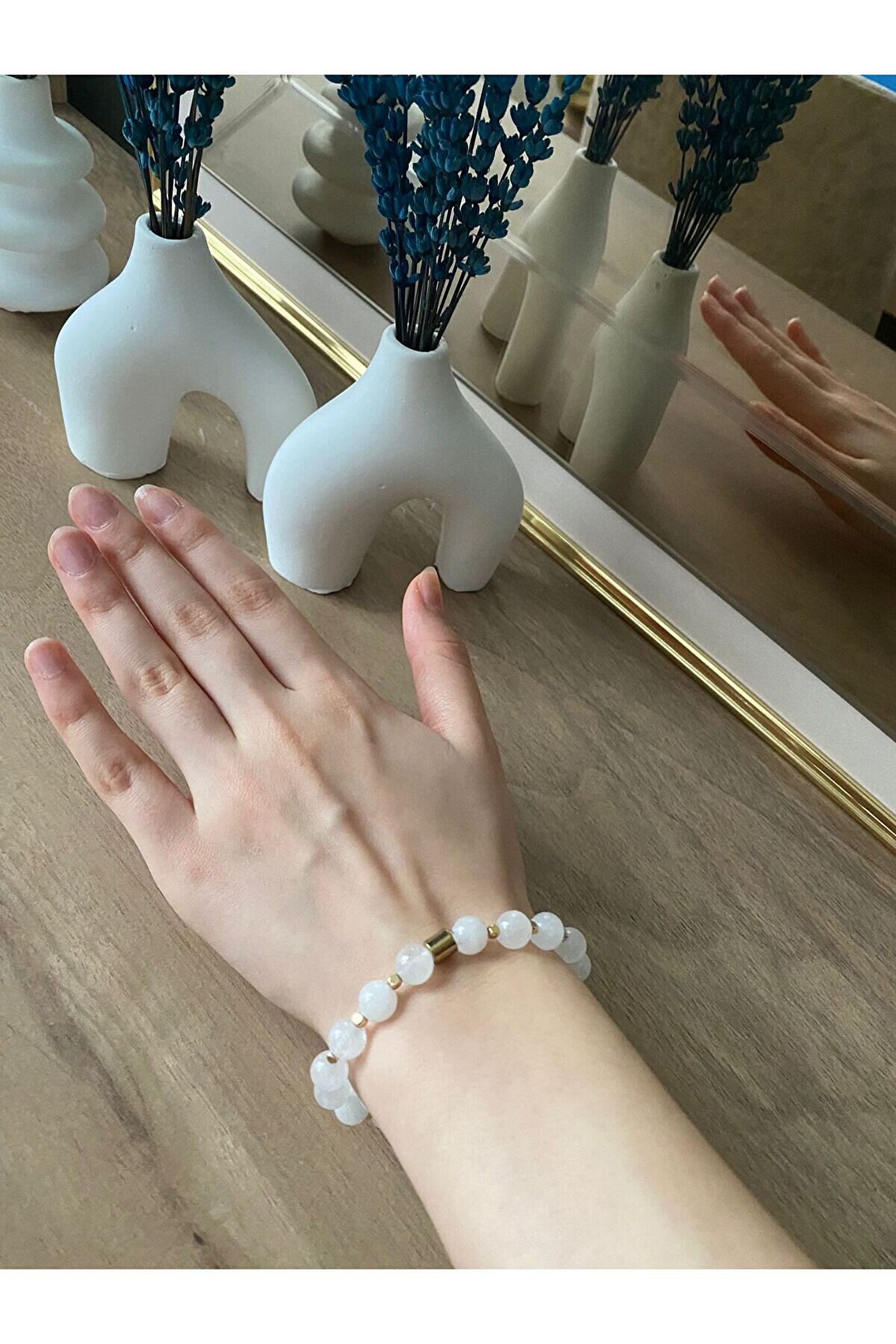 Doğal taş kullanımı sayesinde her bileklik benzersiz ve özgün bir görünüm sunar; Kristal kuvars taşı, şıklığı ve zarafeti bir arada barındırarak her kıyafetle uyum sağlar; Doğal taş bileklik, hem günlük kullanım hem de özel günler için ideal bir aksesuar seçeneği sunar; Kristal kuvars taşı, enerji veren ve pozitif titreşimleriyle kişisel bakımınıza katkıda bulunur;