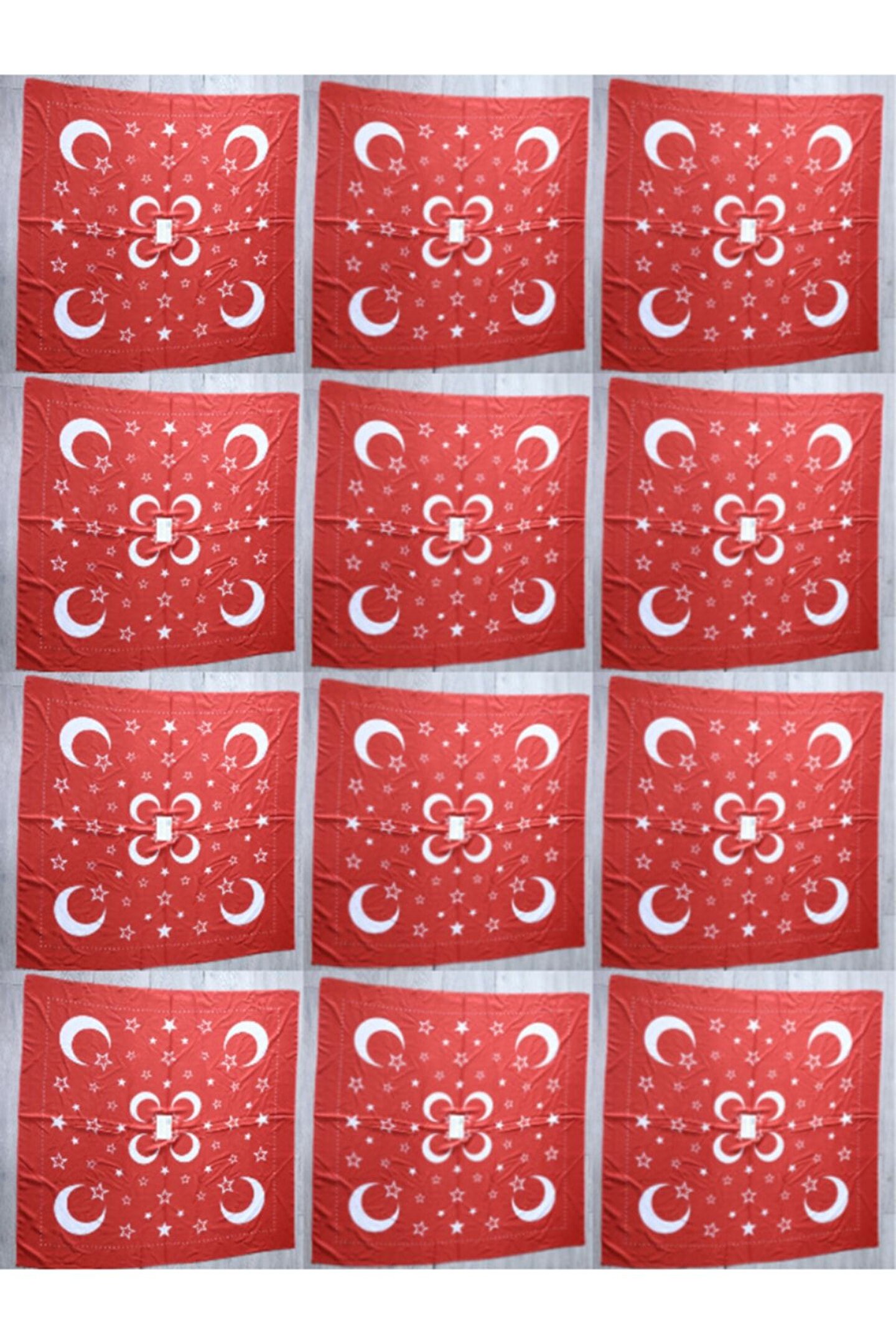 12 Adet Kırmızı Beyaz Ayyıldız Arkadaşlara Yarenlere Dağıtmak Için 100 X 100 Cm Asker Uğurlama Şalı