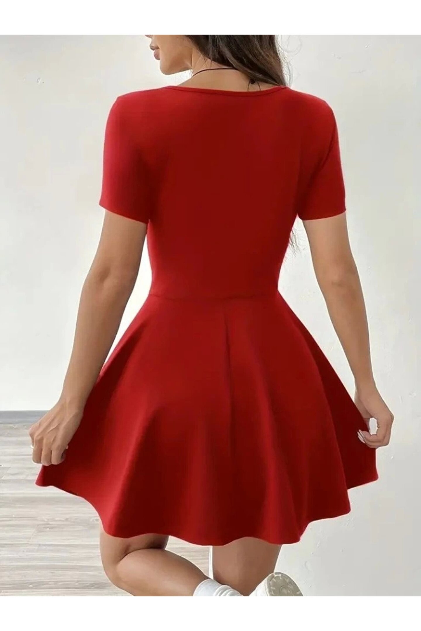 BÜŞRA TEZEL MODA Kadın Kısa Kollu Kare Yaka Short Detaylı Cepli Dalgıç Elbise