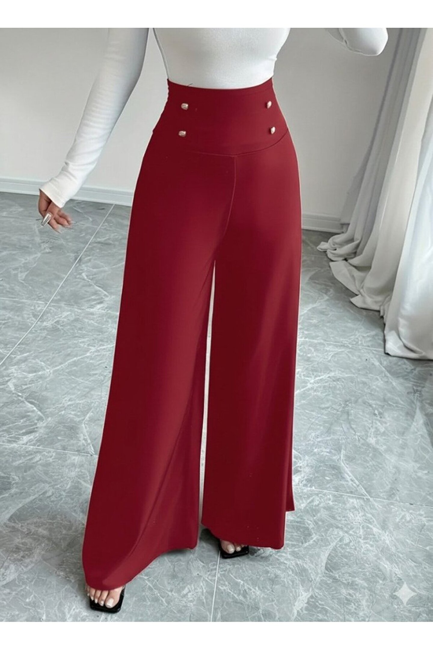 Butik EQURİ Kadın Yüksek Bel Düğmeli Geniş Paçalı Ithal Krep Pantolon