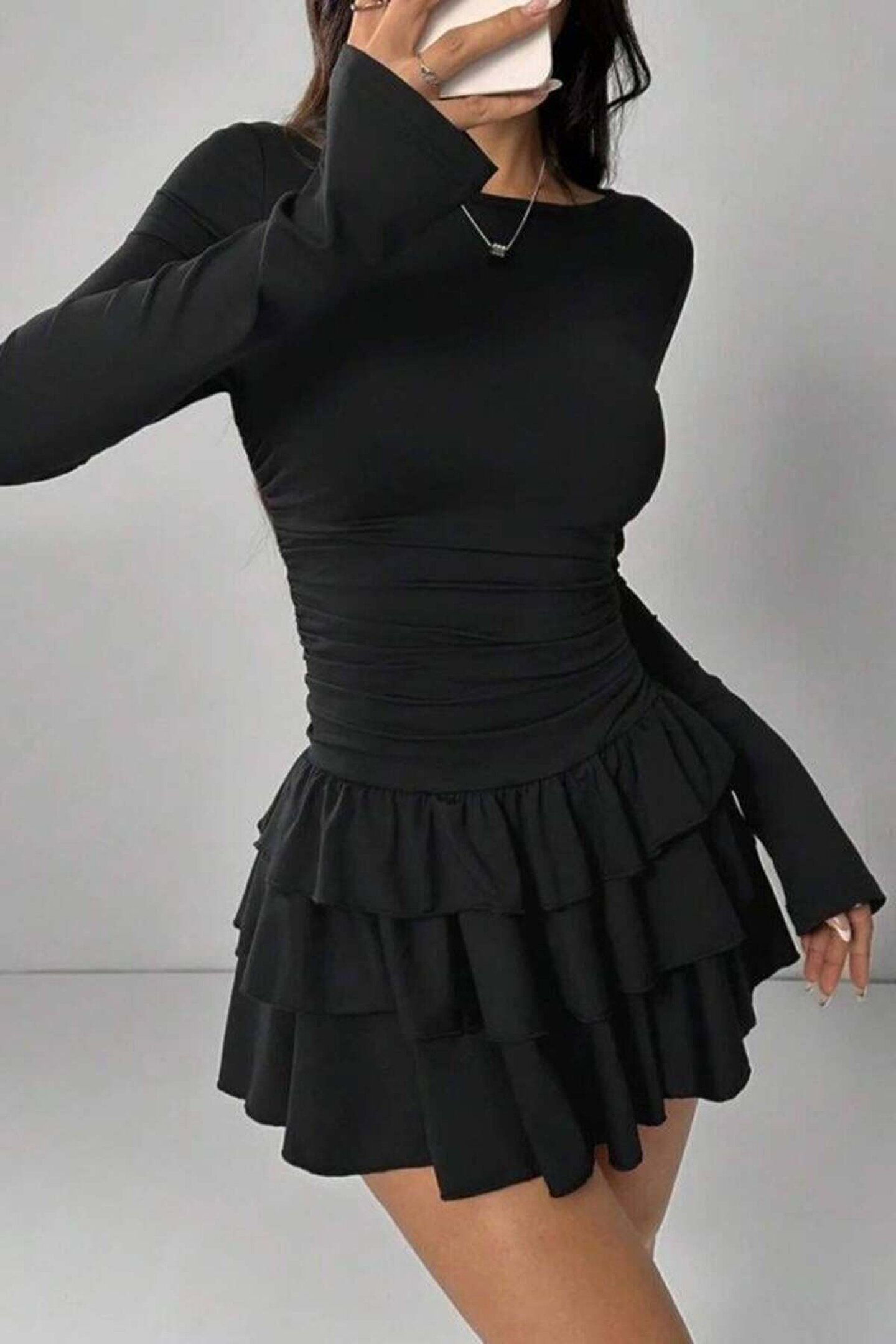 Butik Eteği Kat Kat Volanlı Mini Elbise