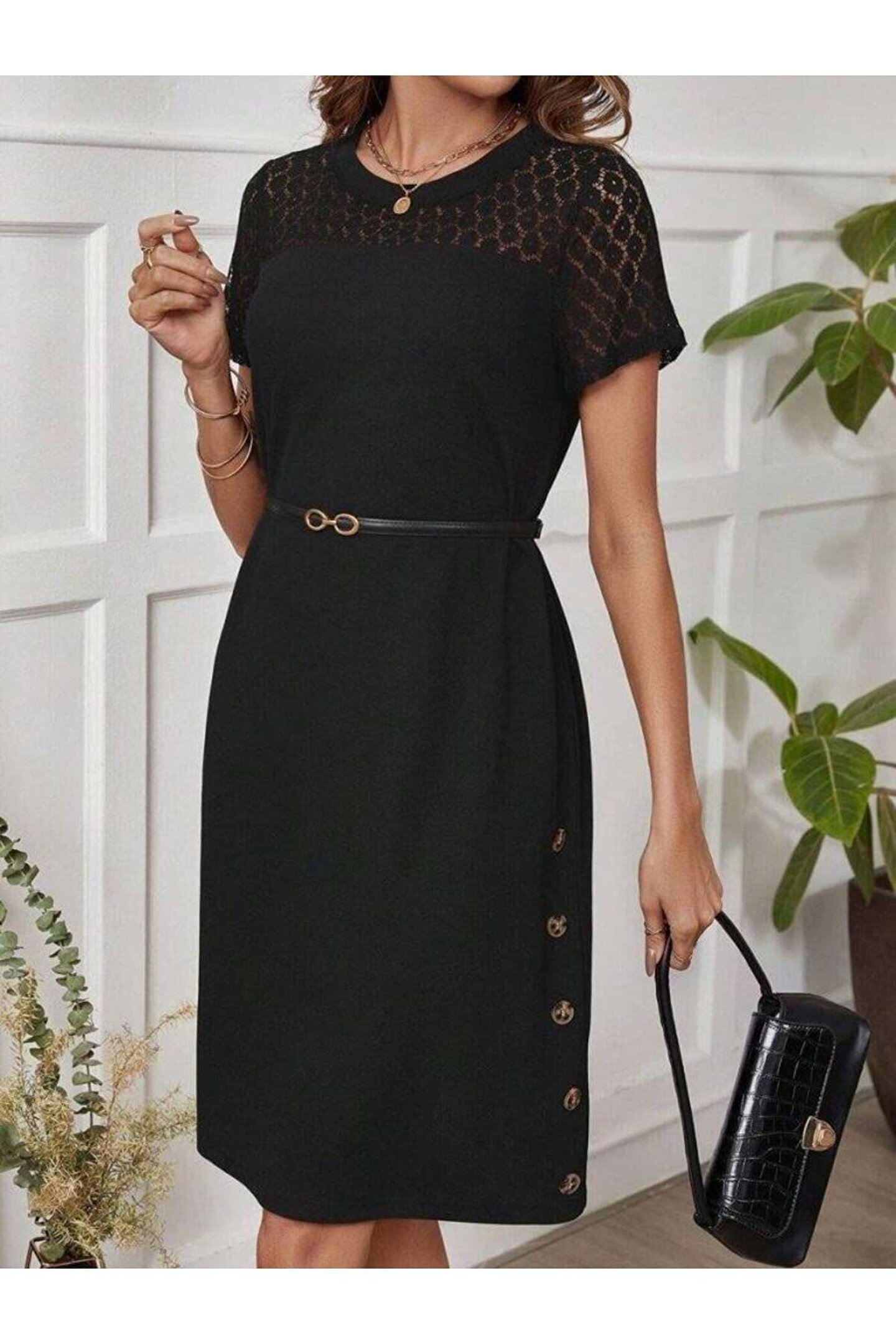 Kadın Kısa Kollu Bisiklet Yaka Dantel Detaylı Düğmeli Modal Elbise