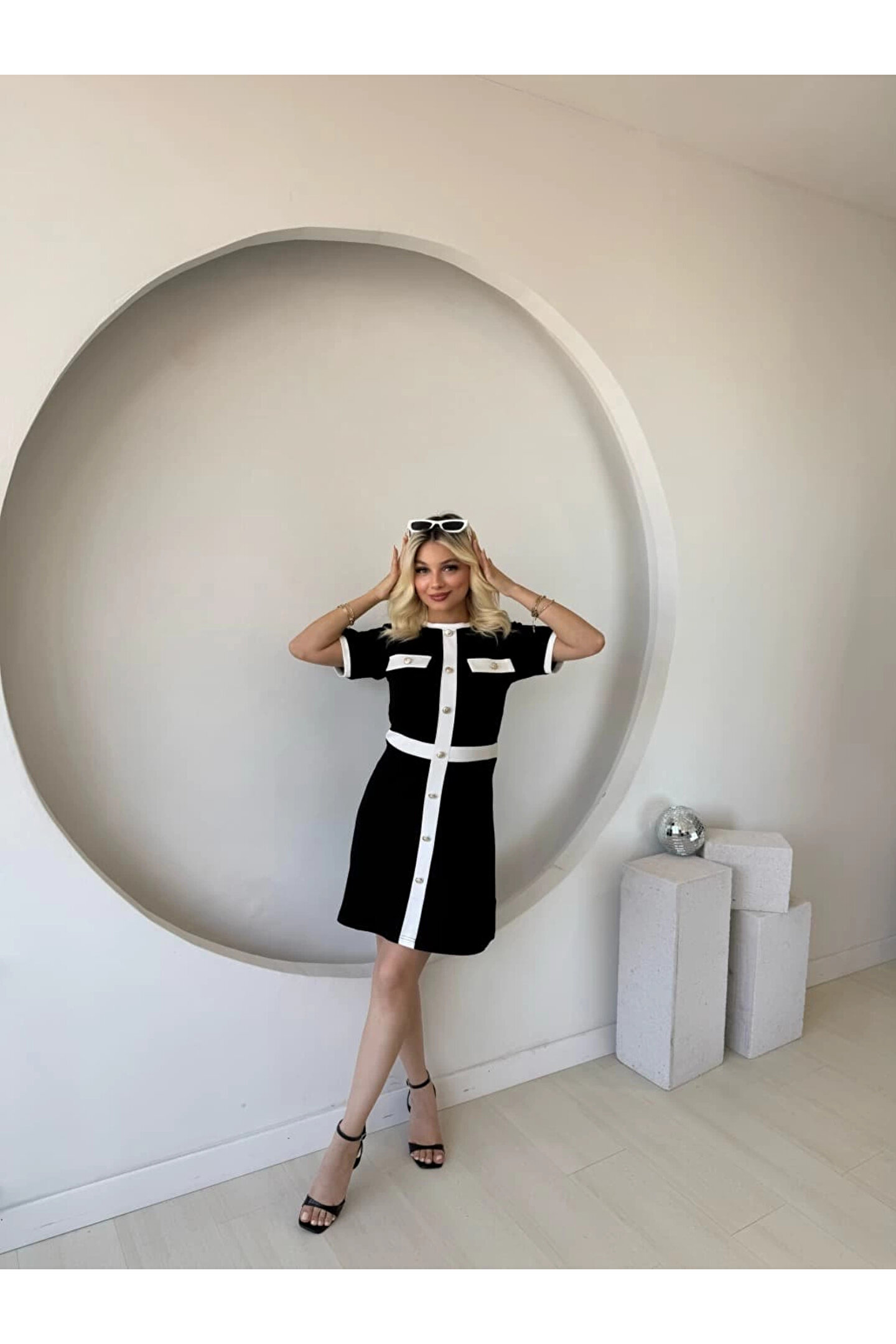 Butik Kadın Kısa Kollu Bisiklet Yaka önden Düğmeli Modal Elbise