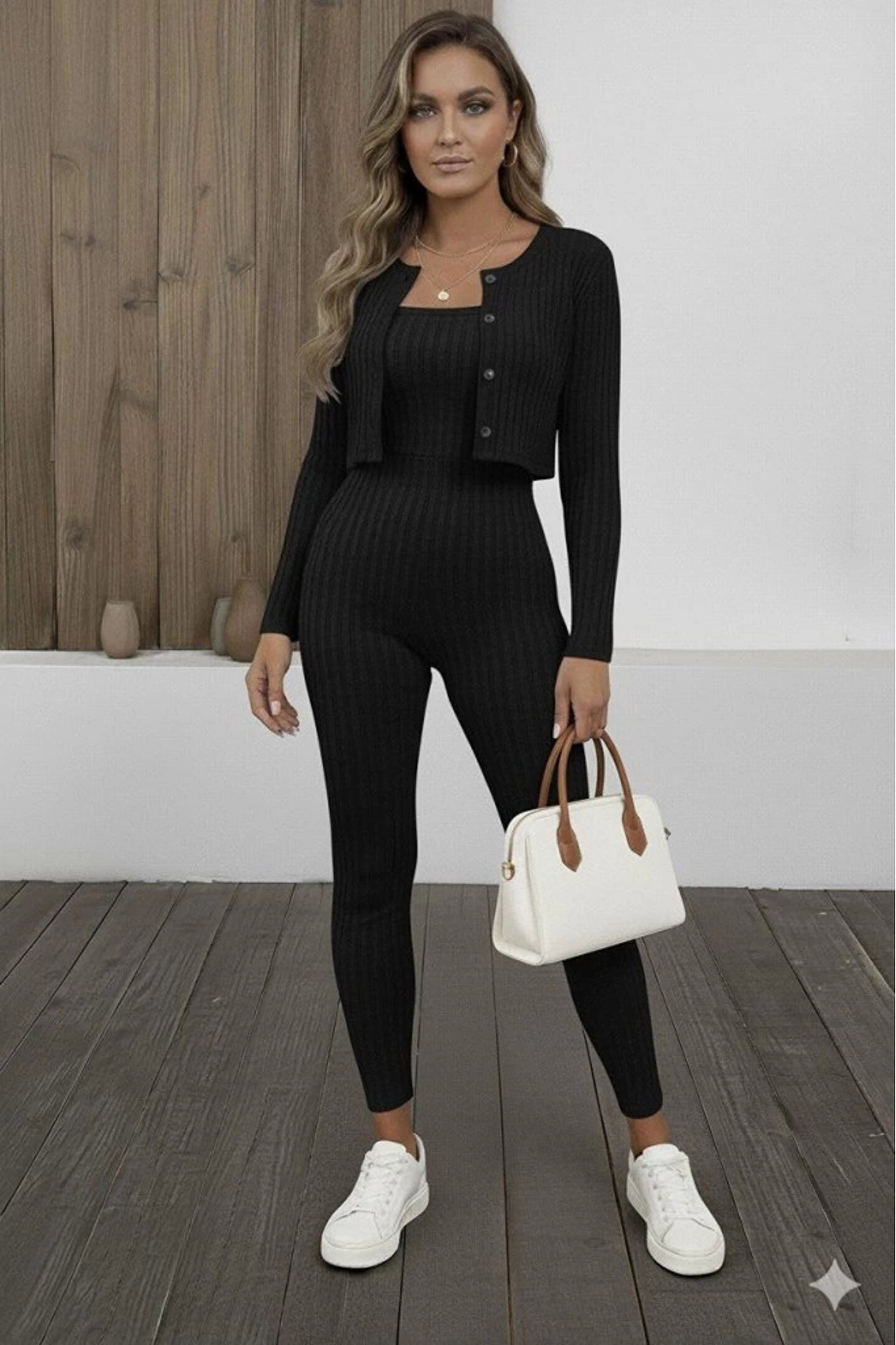 Butik Kadın Uzun Kollu şardonlu Kaşkorse Straplez Ile Kısa önden Düğmeli Ceket Ikili Takım