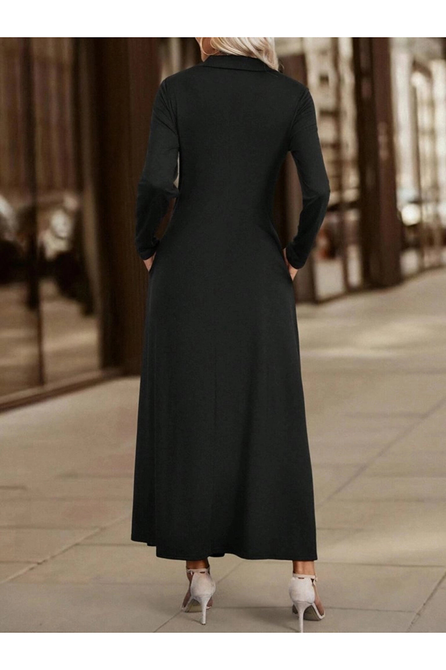 Butik Kadın Uzun Kollu Yakalı önden Fermuarlı Uzun Viskon Iki Iplik Elbise