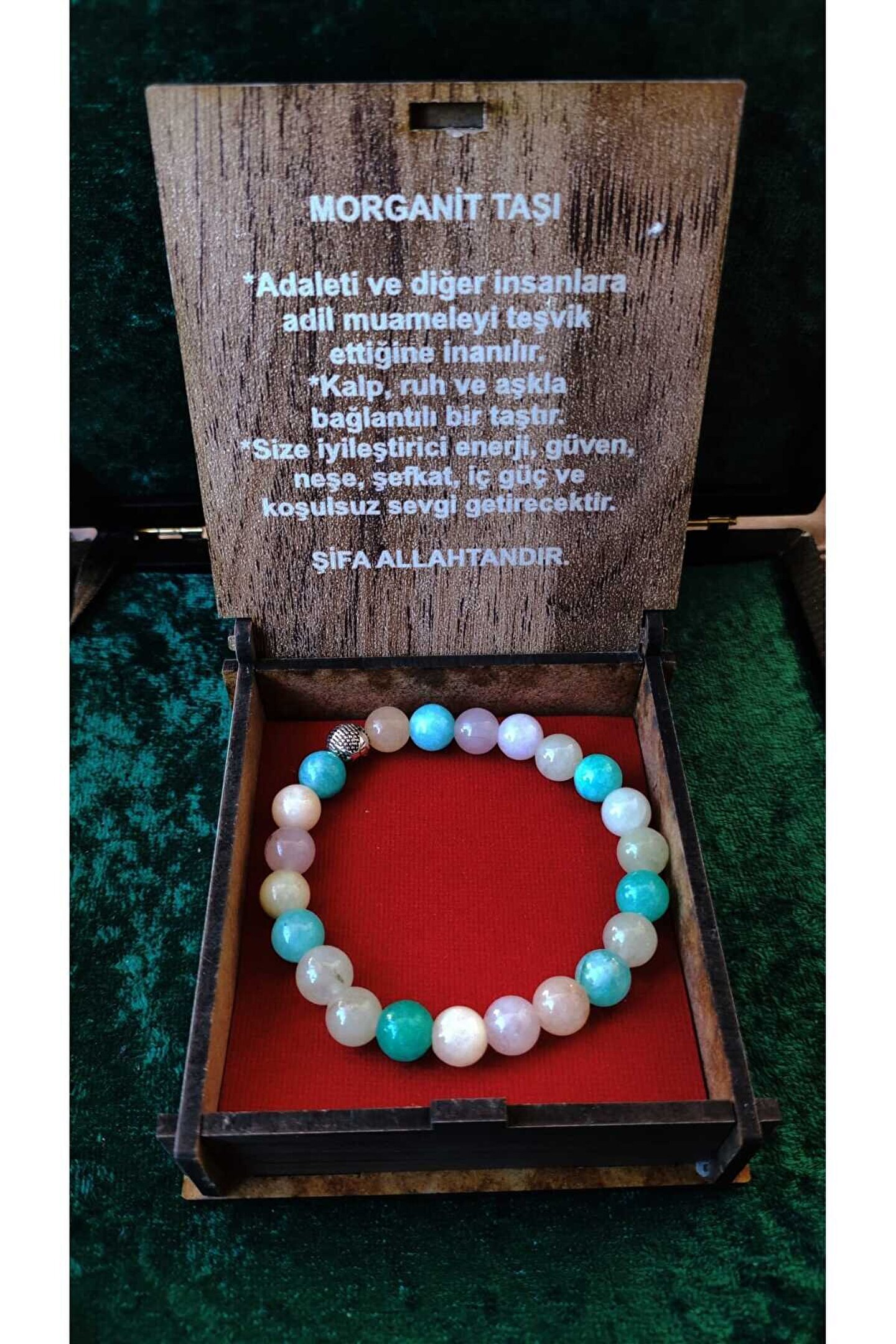 Doğal taş bileklik, her bir bileklikte bulunan benzersiz desen ve renklerle doğanın zarafetini parmaklarınıza taşır; Morganit taşı, enerjiyi dengelemeye ve stresi azaltmaya yardımcı olan doğal bir taş olarak bilinir, bu sayede günlük kullanımınızda pozitif bir etki yaratır; Doğal taş materyali sayesinde, bilekliğiniz hem şık hem de dayanıklı bir aksesuar olarak öne çıkar;