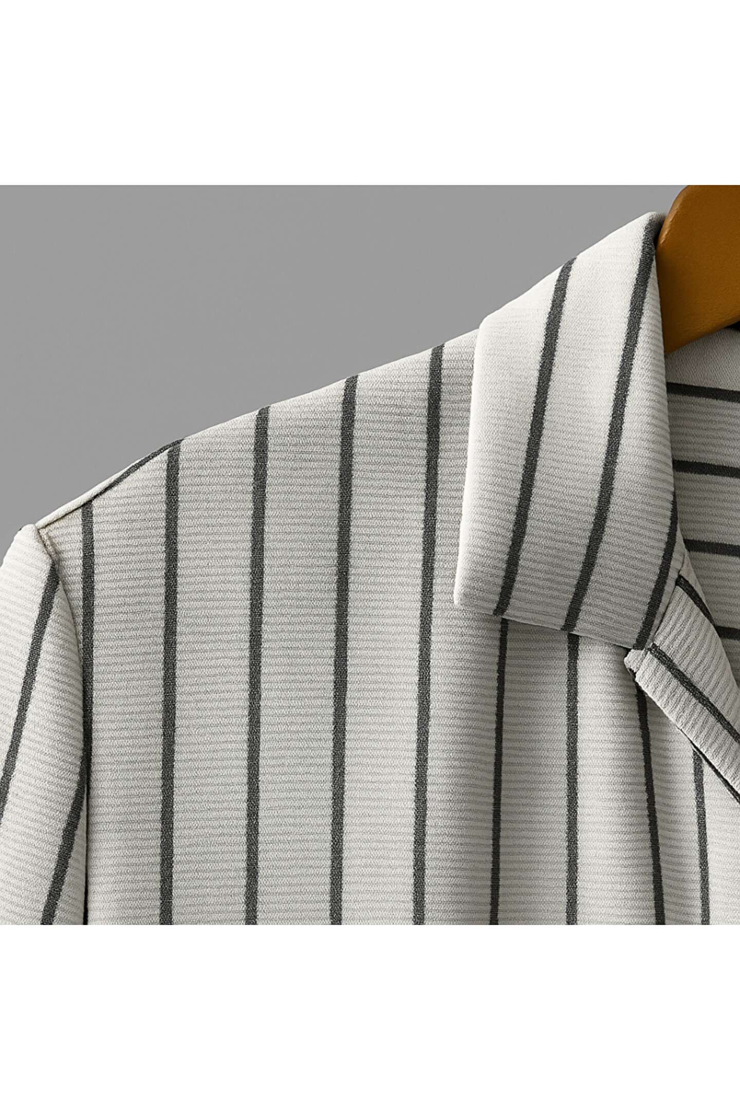 Butik munn collection Erkek Kısa Kollu Gri çizgi Desenli örme Kumaş Pamuklu Gömlek