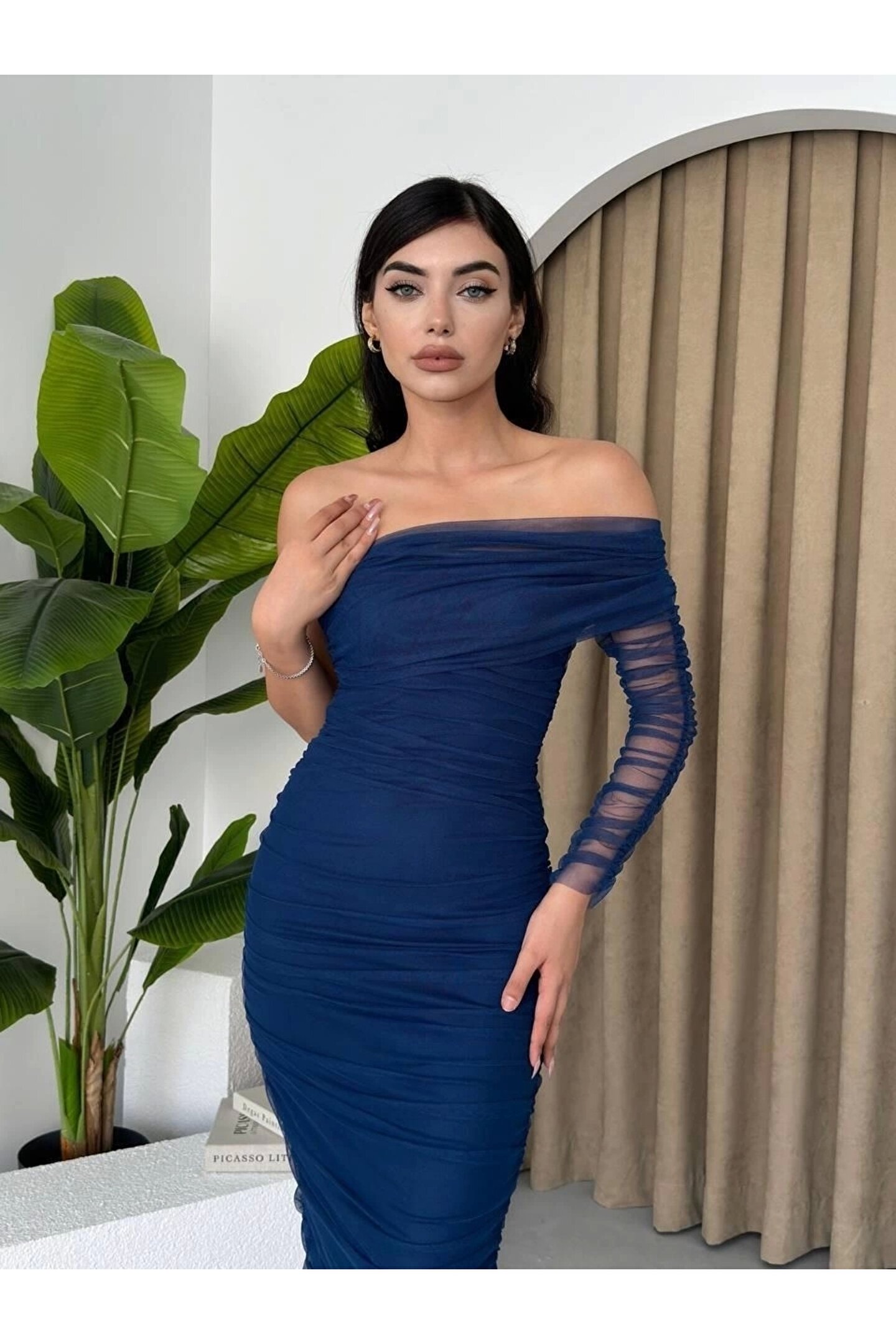 BY ELİZE Polack Tek Omuz Tül Elbise