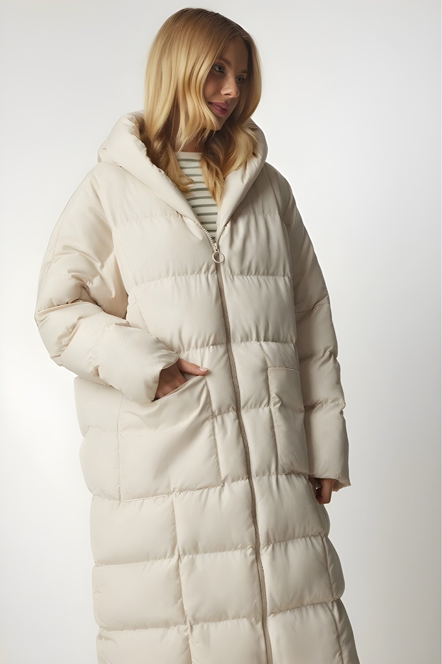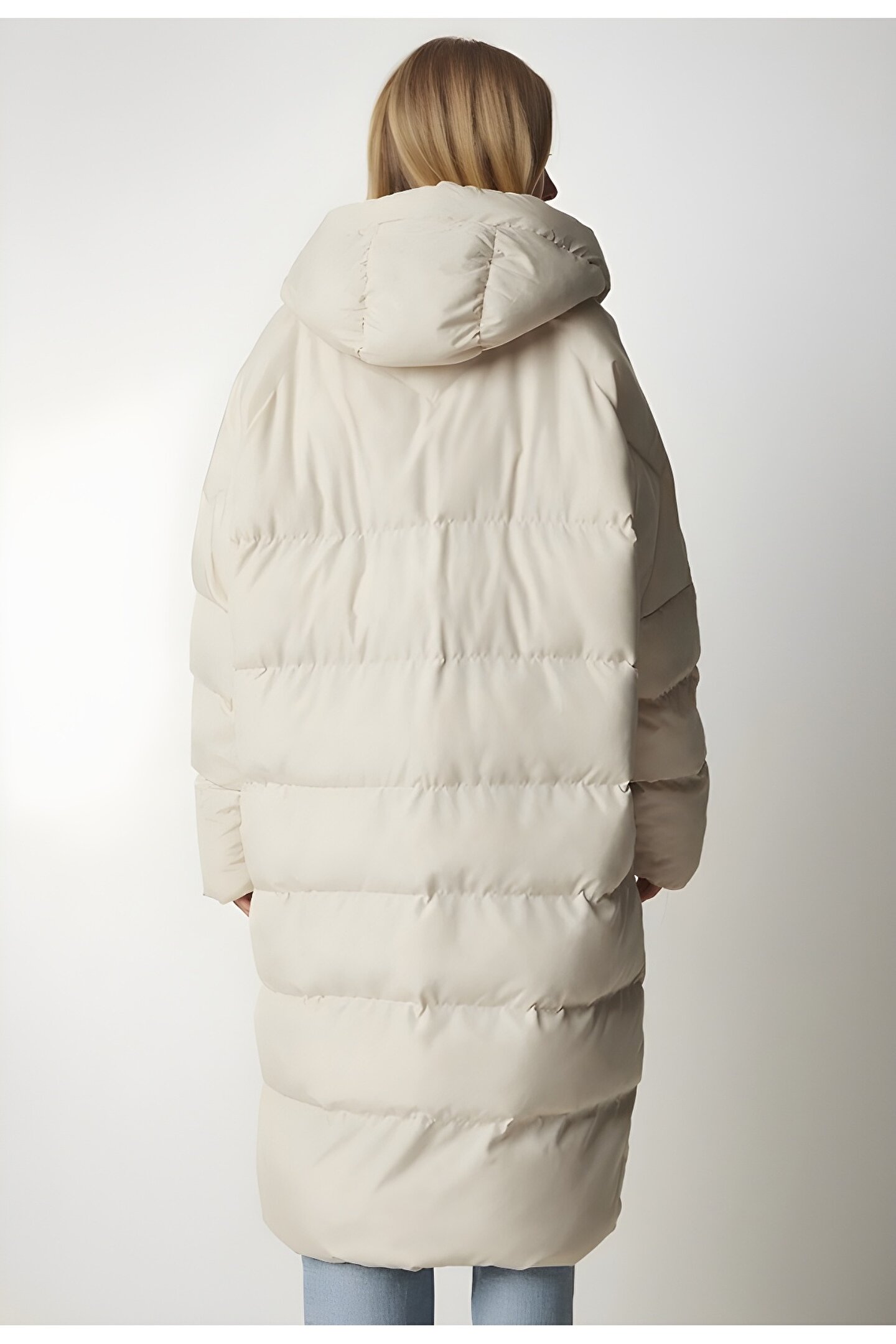BY SCK Kadın Oversize Uzun Kapüşonlu Şişme Mont – Bej