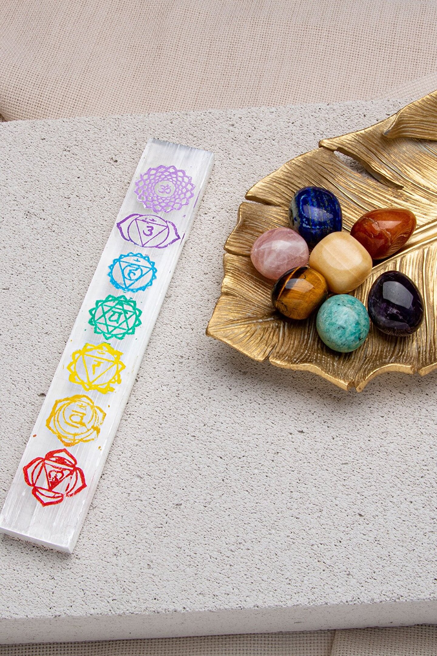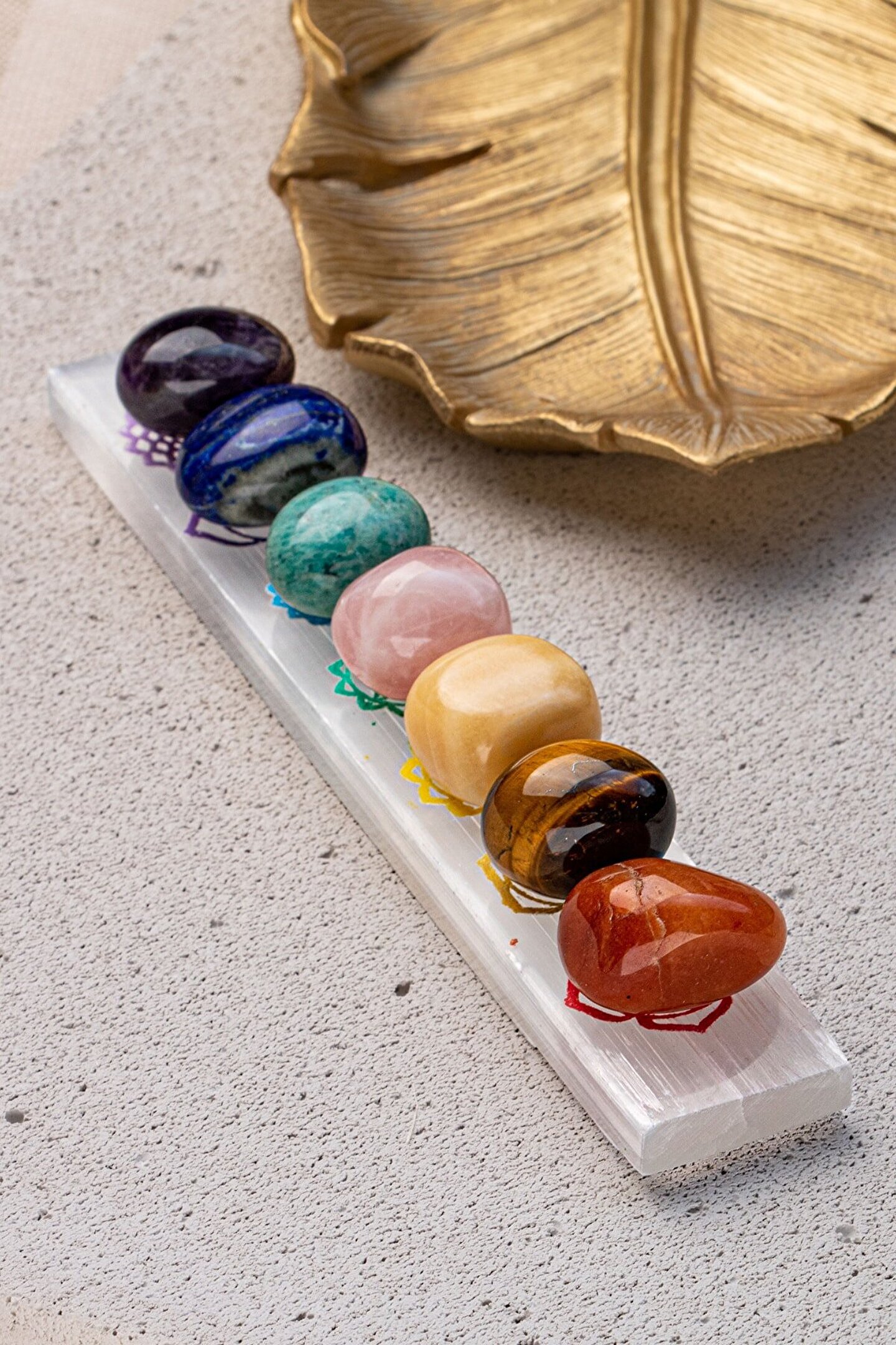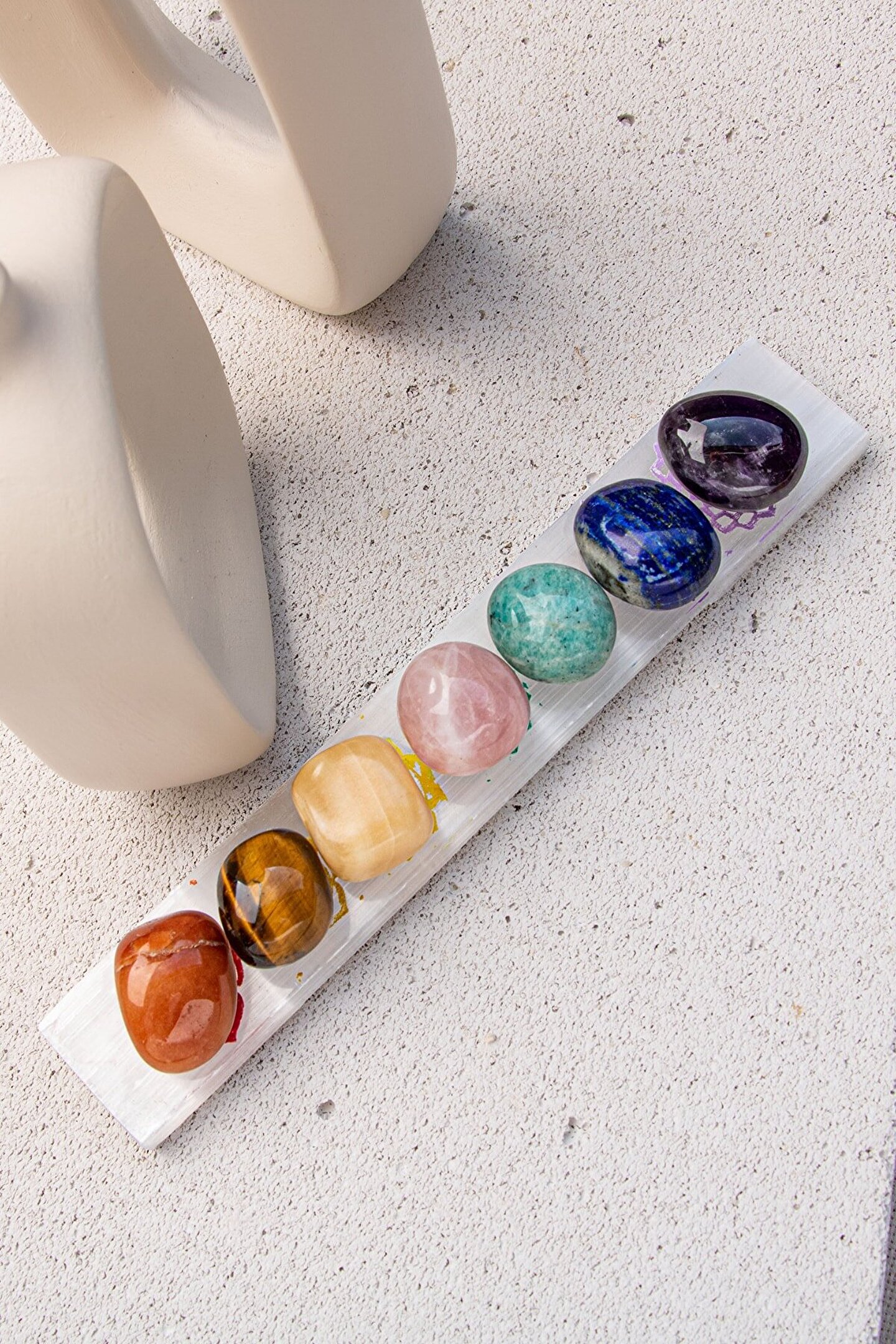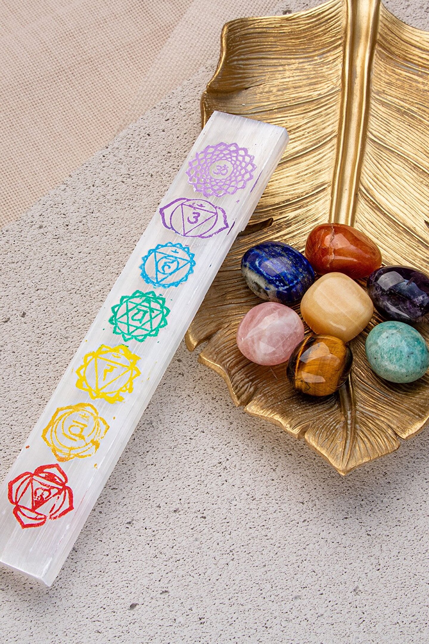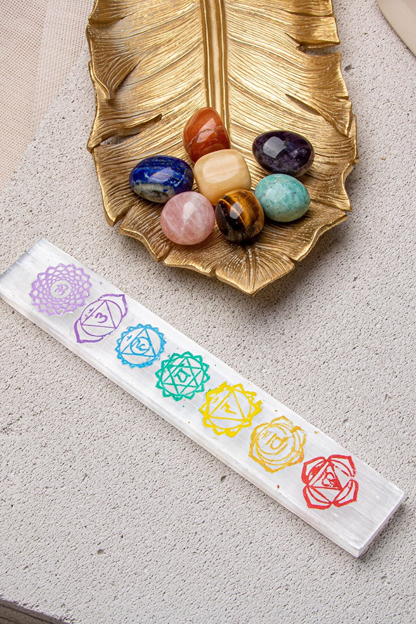 7'Lİ ÇAKRA DOĞAL TAŞ & SELENİT DOĞAL TAŞ ÇUBUK ARINDIRMA- ŞİFALANDIRMA SETİ Setin içindekiler: 7 adet çakra bölgesi doğal taş tımbıl (avuç taşı) ve selenit arındırma çubuğu Kullanımı: Evin en çok vakit geçirilen noktalarına 7 çakra taşını konumlandırarak evinizin üzerindeki negatif enerjiyi ve nazar& kem gözü temizleyip evinizi arındırabilirsiniz.Evinize giren paranın bereket bolluk enerjisini yükseltebilirsiniz. ; Yatak başınıza konumlandırarak daha rahat uyumayı sağlayıp, uyku kalitenizi arttırabilirsiniz. ; Selenit dünya üzerindeki kendi kendini temizleyebilen tek doğal taştır. ; Varolan parça doğal taşlarınızın ya da doğal taş takılarınızın enerjilerini temizlemek için selenit taşını kullanbilirsiniz. ; Çakra renkleri ve sembollerine sahip selenit taşı ile tüm doğal taşlarınızı topraklayıp yeniden şarj edebilirsiniz. ; Evinize, ofisinize ya da arınmasını istediğiniz bir odaya selenit çubuğu yerleştirerek oradaki negatif enerjiyi temizleyebilirsiniz. ; Faydaları: Blokaj olan çakra bölgelerindeki blokajı kaldırmaya söz konusu olan çakra bölgesini açmaya yardımcı olur. ; Fazla açık olan çakra bölgesini dengeler. ; Kaygı ve endişeyi azaltır. ; Kişiyi daha dinç kılar. ; Para akışını kuvvetlendirir. ; Negatif enerjiyi uzaklaştırır. ; Ürünlerimiz %100 orijinal doğal taşlardan oluşmaktadır.;