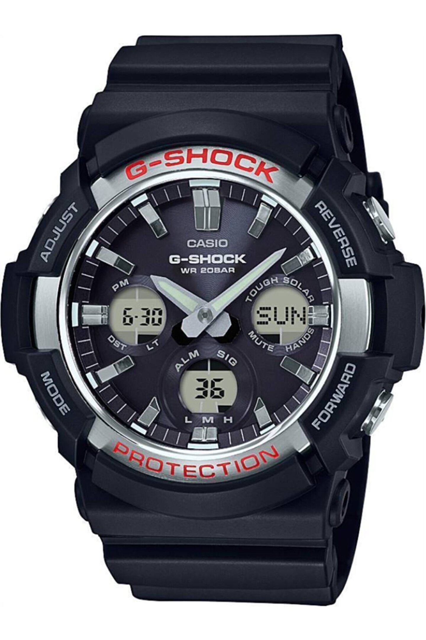 Temel Özellikler; Alarm, Aydınlatma, Dünya Saatleri, Güneş Enerisi, Kronometre, Takvim Genel Özellikler; Tarz : Spor Saat Seri : G-Shock Kasa Şekli : Oval Kasa Cinsi : Plastik Kasa Rengi : Gri-Siyah Kadran Rengi : Siyah Kordon Rengi : Siyah Kordon Tipi : Silikon Cam Tipi : Mineral Su Geçirmezlik : 200 Atm Ağırlık : 76 Gr Ölçü : 52.5x55.1x16.7 Makine Tipi : Analog / Digital Menşei : Çin Diğer Özellikler; 12/24 Saat Formatı, Pil Seviye Göstergesi, Darbelere Karşı Dayanıklılık, Sessizlik Fonksiyonu