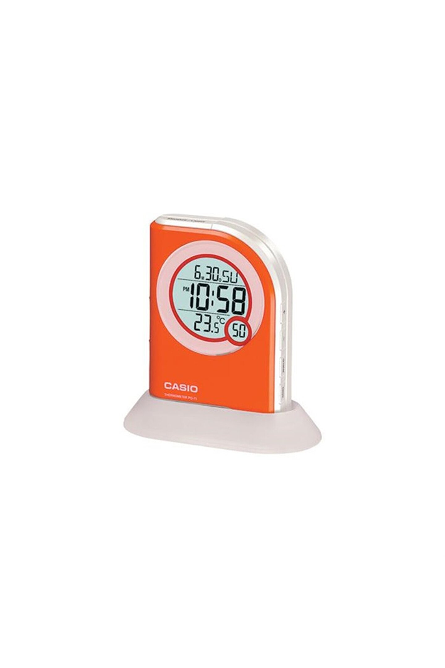 Genel Özellikler Marka Casio Seri Clock Cinsiyet Masa Makine Tipi Digital Garanti 2 Yıl Ağırlık 155 gr Su Geçirmezlik 0 m Kasa & Kayış & Kadran Kasa Çapı 71 mm Kasa Yüksekligi 103 mm Kasa Kalınlığı 24 mm Kasa RengiBeyaz-Turuncu Kasa Şekli Köşeli Kasa Cinsi Plastik Kayış Rengi Turuncu Kadran Rengi Gri Kasa-Kadran Taşı- Özellikler Alarm Var Aydınlatma Var Takvim Var Termometre Var
