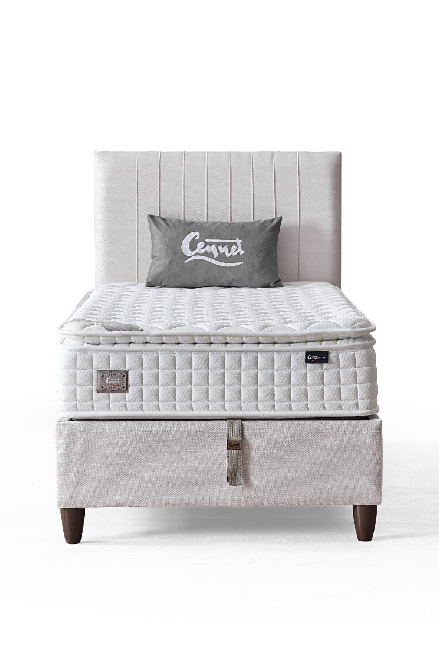Tek Kişilik Zambak Başlık & Baza Takımı Zambak Başlık Özellikleri Kumaş ve Konfor Kumaş Türü: Dokuma kumaş Özellik: Sünger dolgulu ve kolay silinebilir yapı Ölçüler Yükseklik (Boy): 101 cm Derinlik: 7 cm Zambak Baza Özellikleri Kumaş ve Malzeme Kumaş Türü: Dokuma kumaş Çevresi: Sünger dolgulu, kolay silinebilir yüzey Kapak Kalınlığı: 20x40 mm (TR standartlarında en kalın ölçü) Kapak Üstü : Kaydırmaz Tela Kullanılmıştır Et Kalınlığı: 1 mm Gövde Ölçüsü: 20x30x0.80 mm İskelet: Statik fırınlı boya, çizilmeye karşı ekstra dayanıklı ve markaya özel renkte Teknik Detaylar Baza Tipi: Sandıklı baza Depolama Alanı: 23 cm iç yükseklik Kulp Tipi: Kemer model kumaş kulp Ayak Yüksekliği: 12 cm (robot süpürge uyumlu) Gövde Mekanizması: Metal iskelet + yonga levha Güvenlik ve Dayanıklılık Emniyet: Yüksek güvenlikli emniyet kilidi Kapakta: Anti-Sleep özellikli özel tela Garanti: 2 yıl Nakliye bina önü değil, kapı teslimidir.