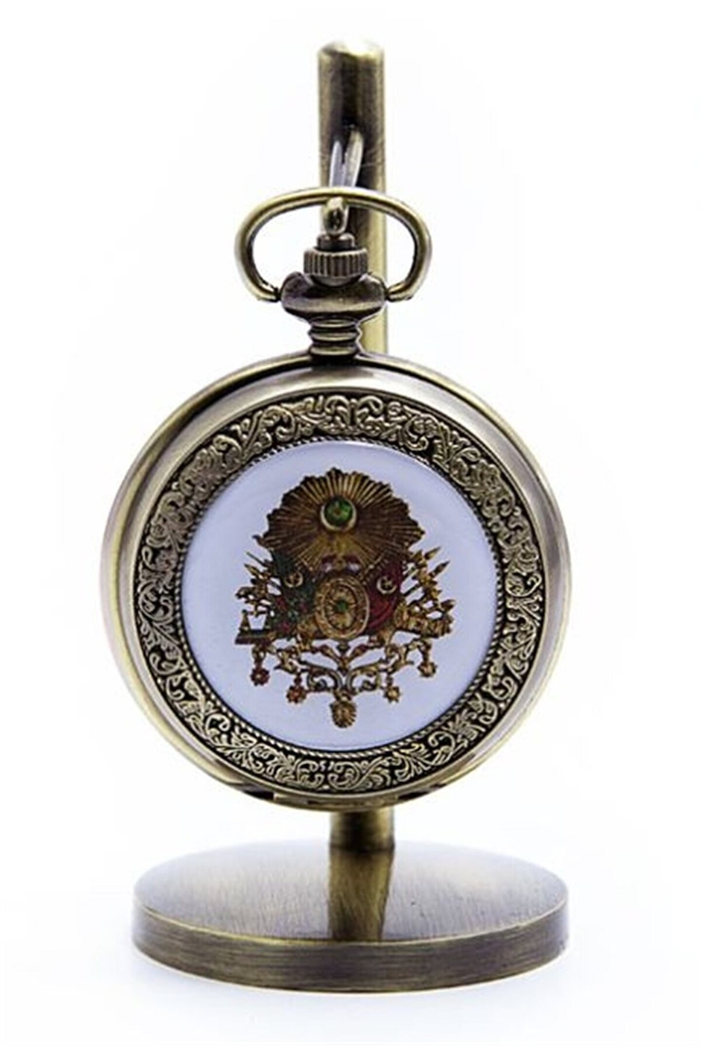 Model:ES; OA Kapağında Osmanlı Devlet Armasının taşıyan , saat mekanizması Japon Citizen Miyota Cal; 2035 ürünü; Eskitilmiş Pirinç gövde, 2 yıl garantili cep saati;