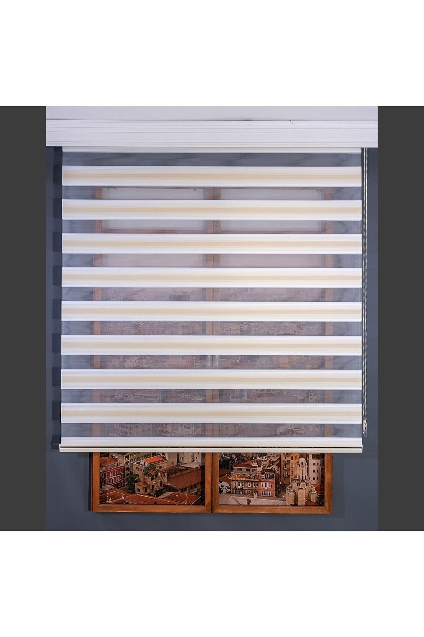 CEYHAN STORE Micro Plise Beyaz Kahve Zebra Stor Perde