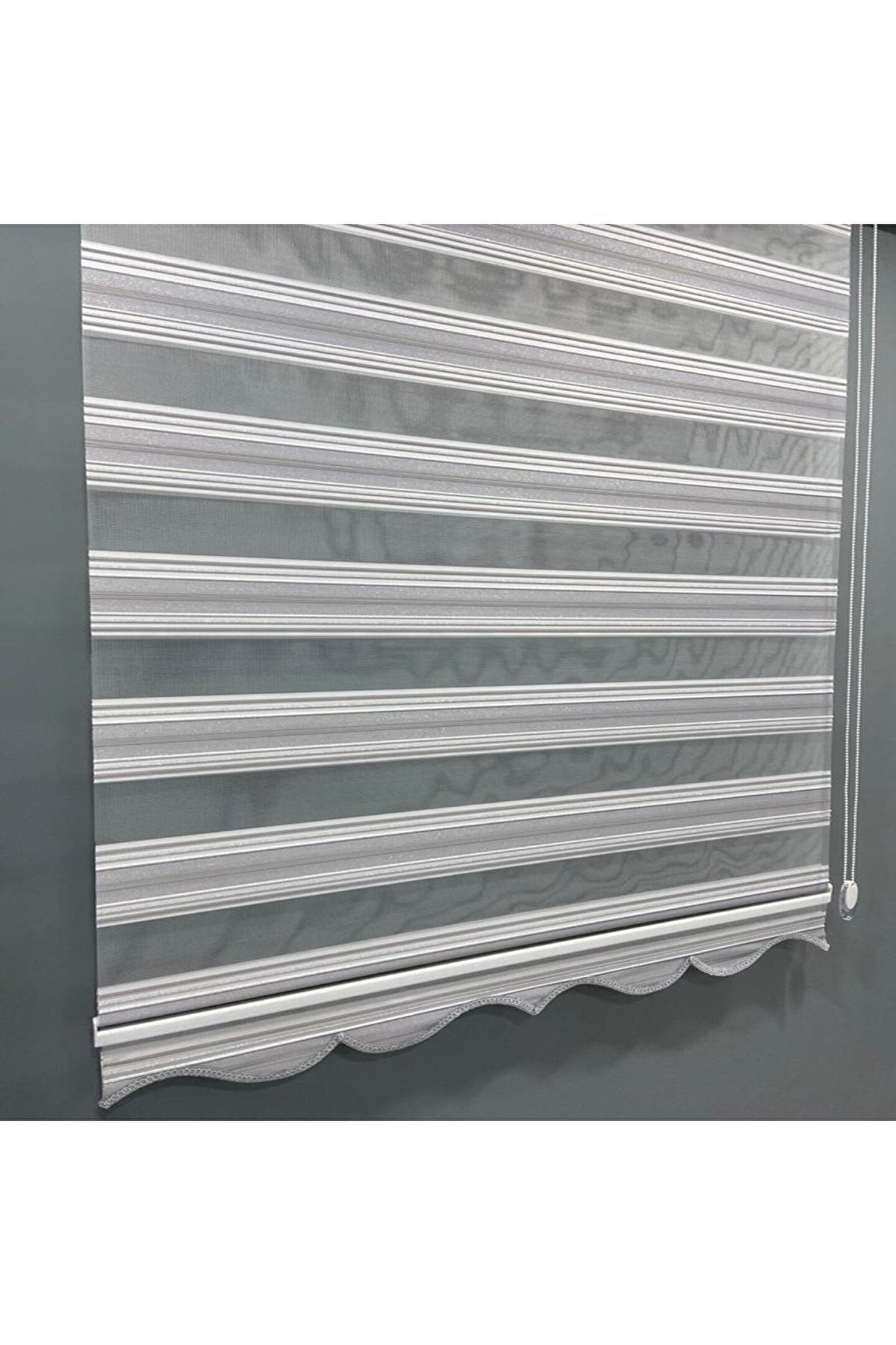 CEYHAN STORE Zebra Stor Perde Ekru Gri Lüx Etek Dilimli