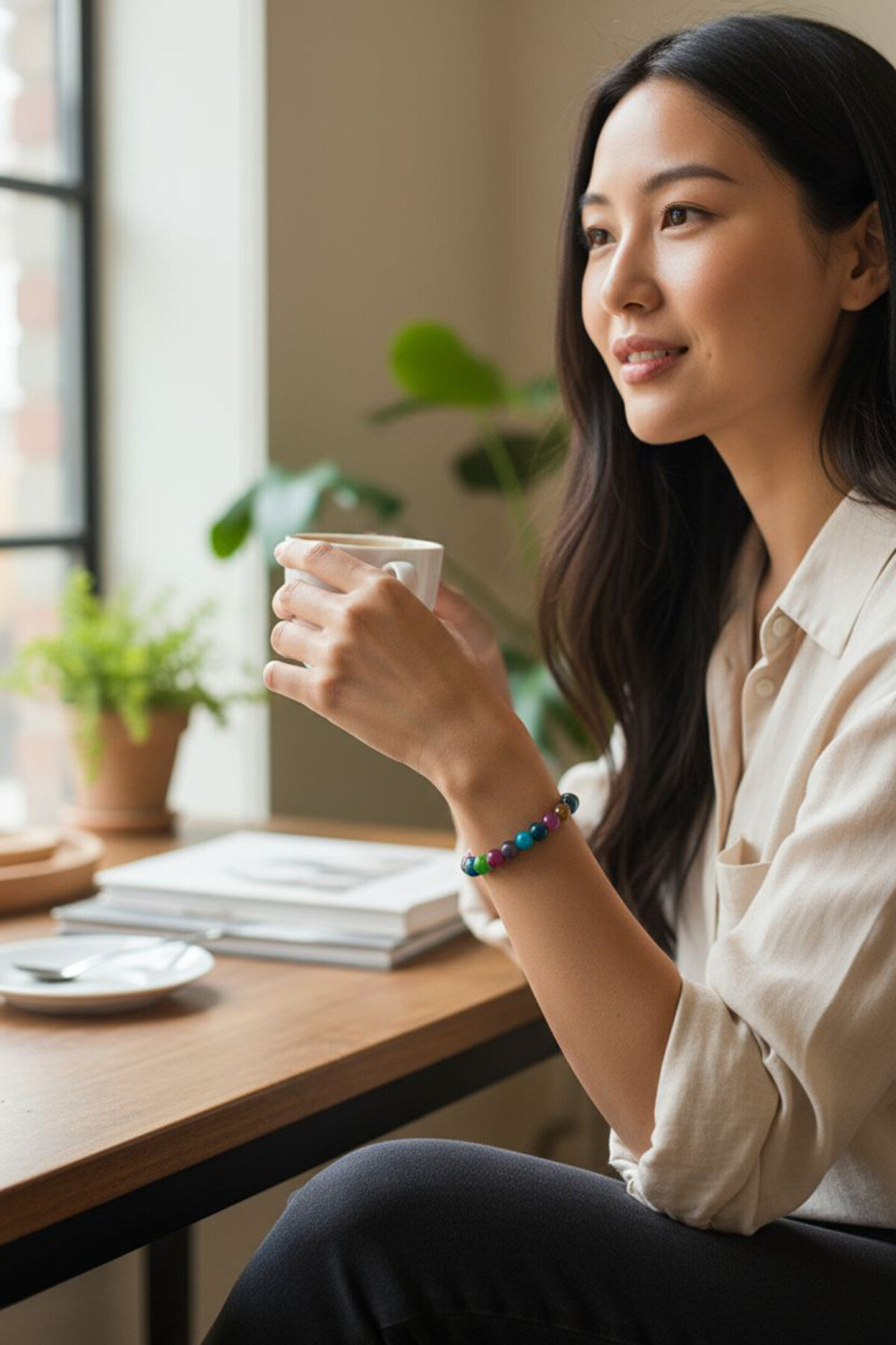 Bilekliğimiz Akik turmalinden yapılmıştır.