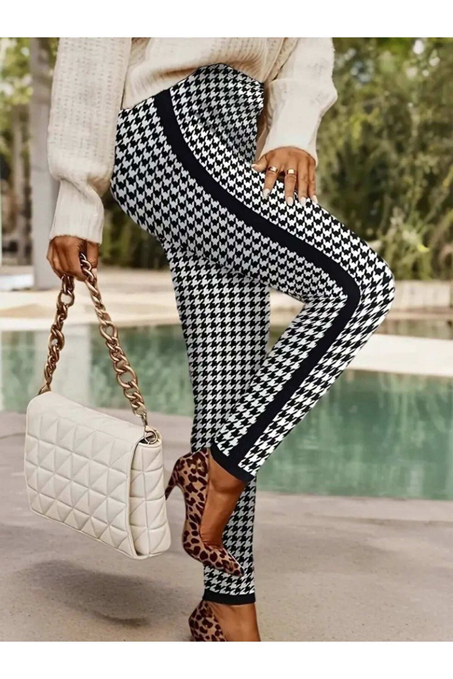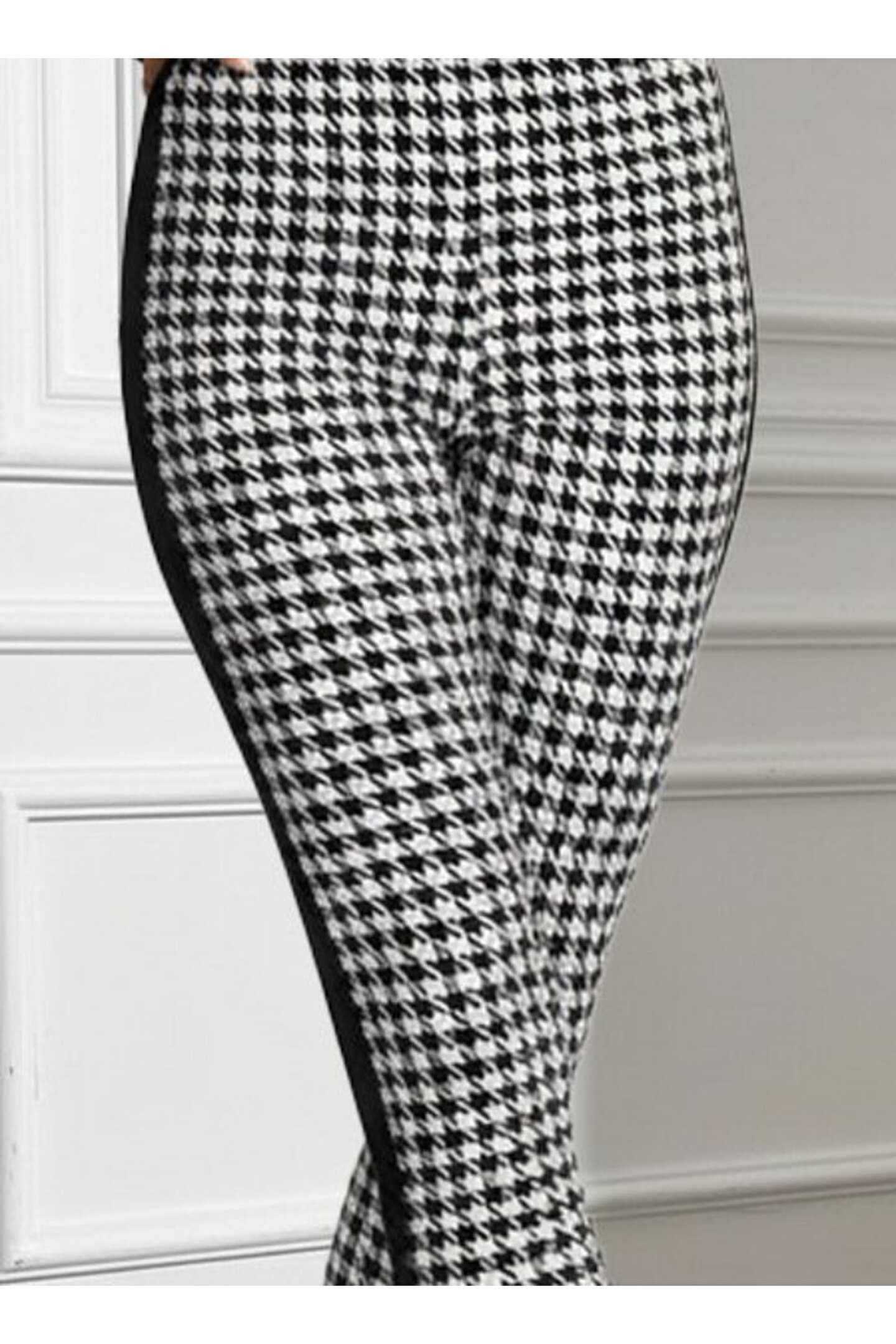 COjans EQURİ Kadın Yüksek Bel Kaz Ayağı Desenli Yanları şeritli Dalgıç Pantolon