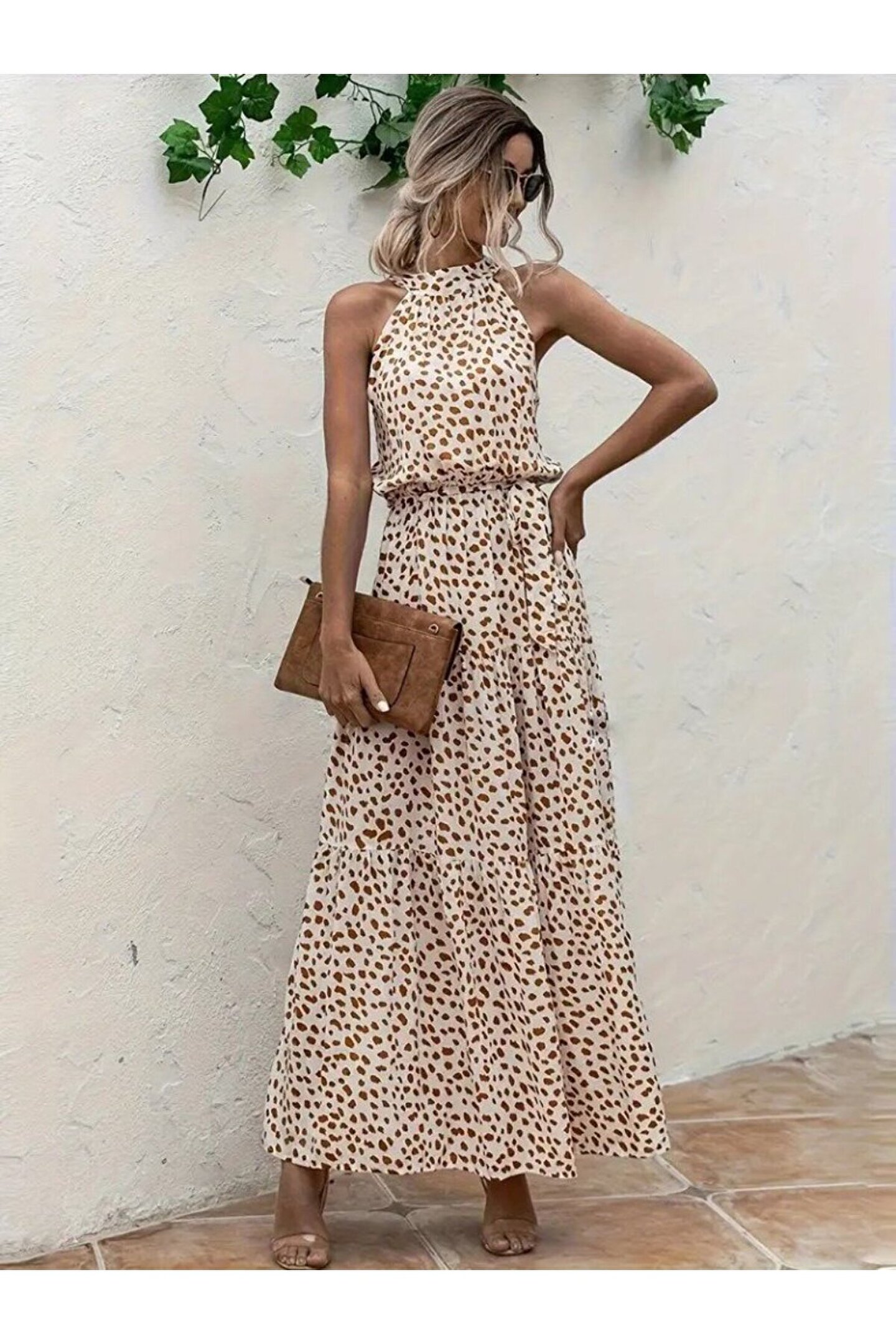 Kadın Daire Yakalı Beli Lastikli Desenli Süprem Elbise
