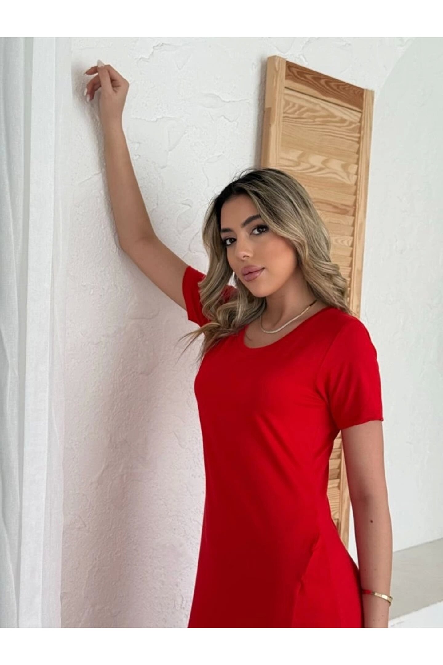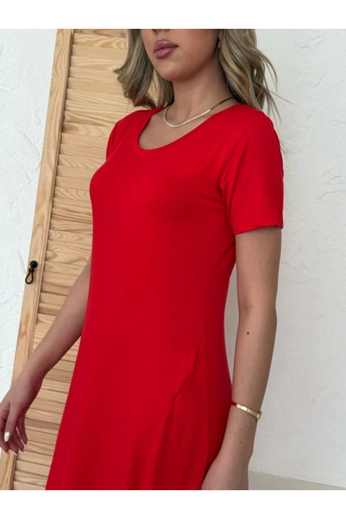 Kadın Kısa Kollu V Yaka Maxi Boy Elbise 124 Cm