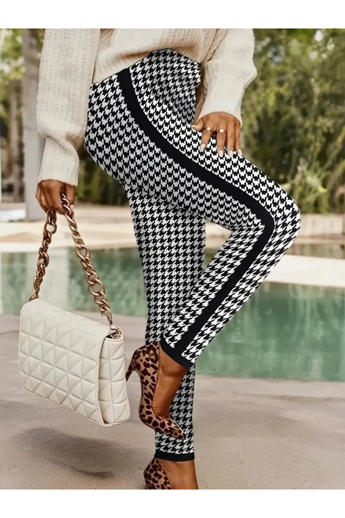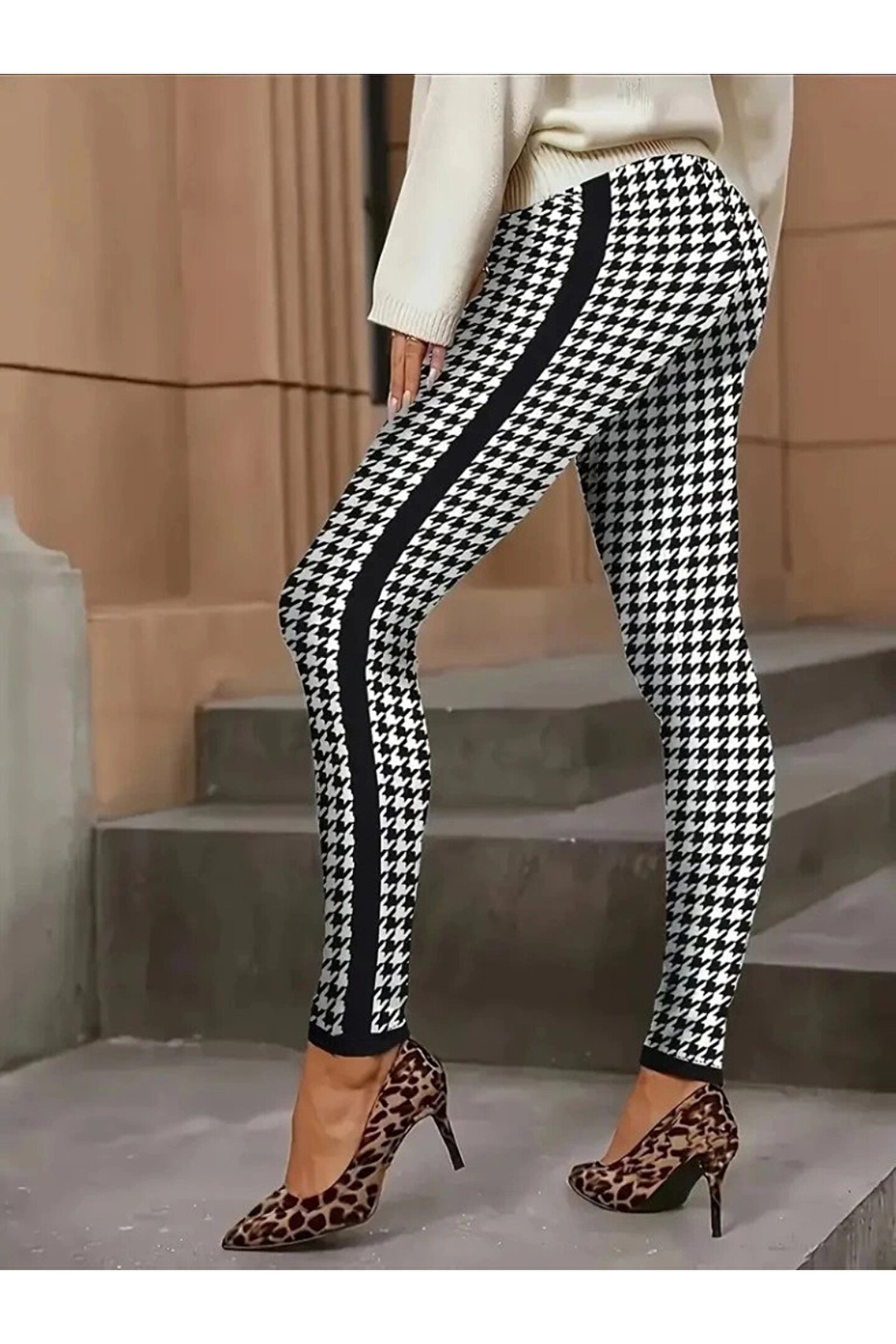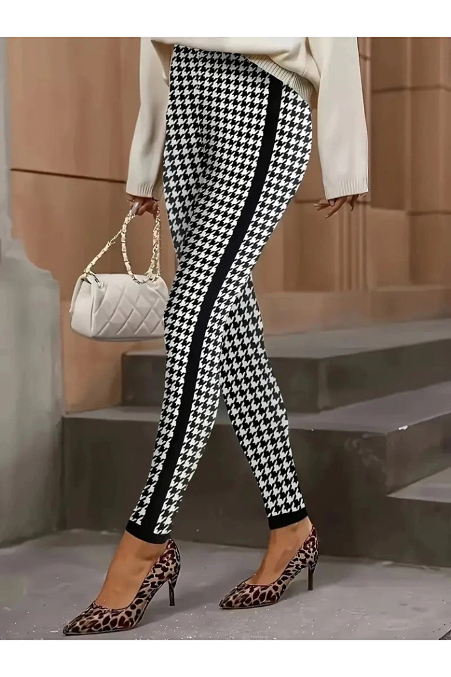 Kadın Yüksek Bel Kaz Ayağı Desenli Yanları şeritli Dalgıç Pantolon
